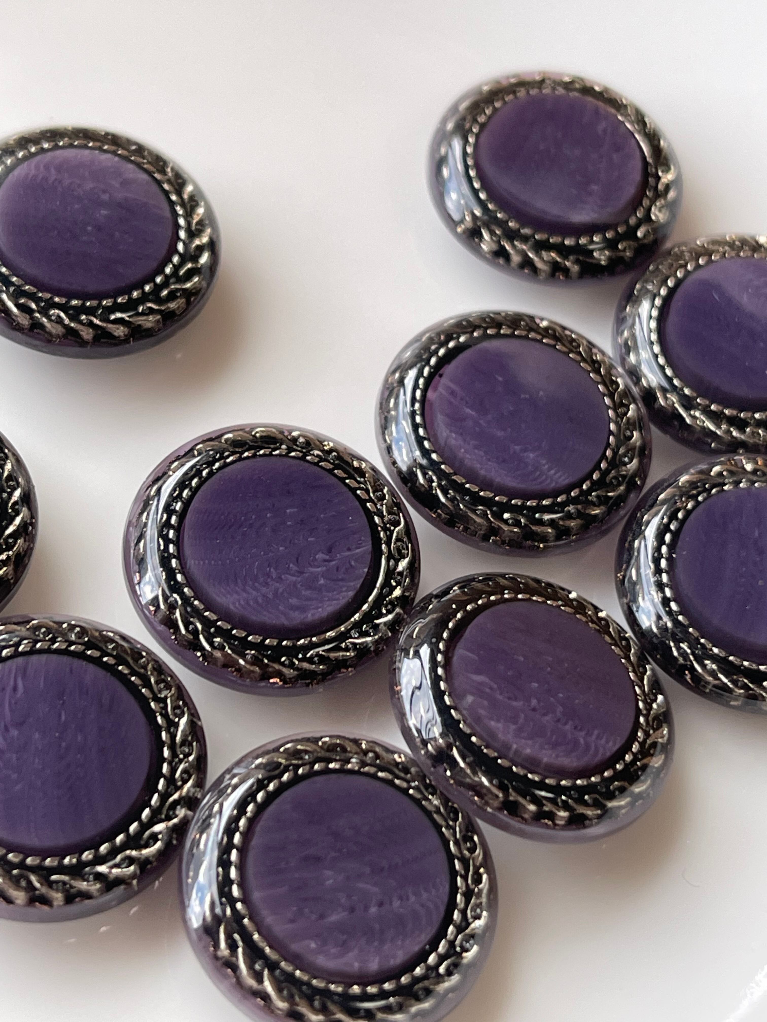 ボタン 10個 中 紫 パープル ヴィンテージ調ボタン 【18-1】