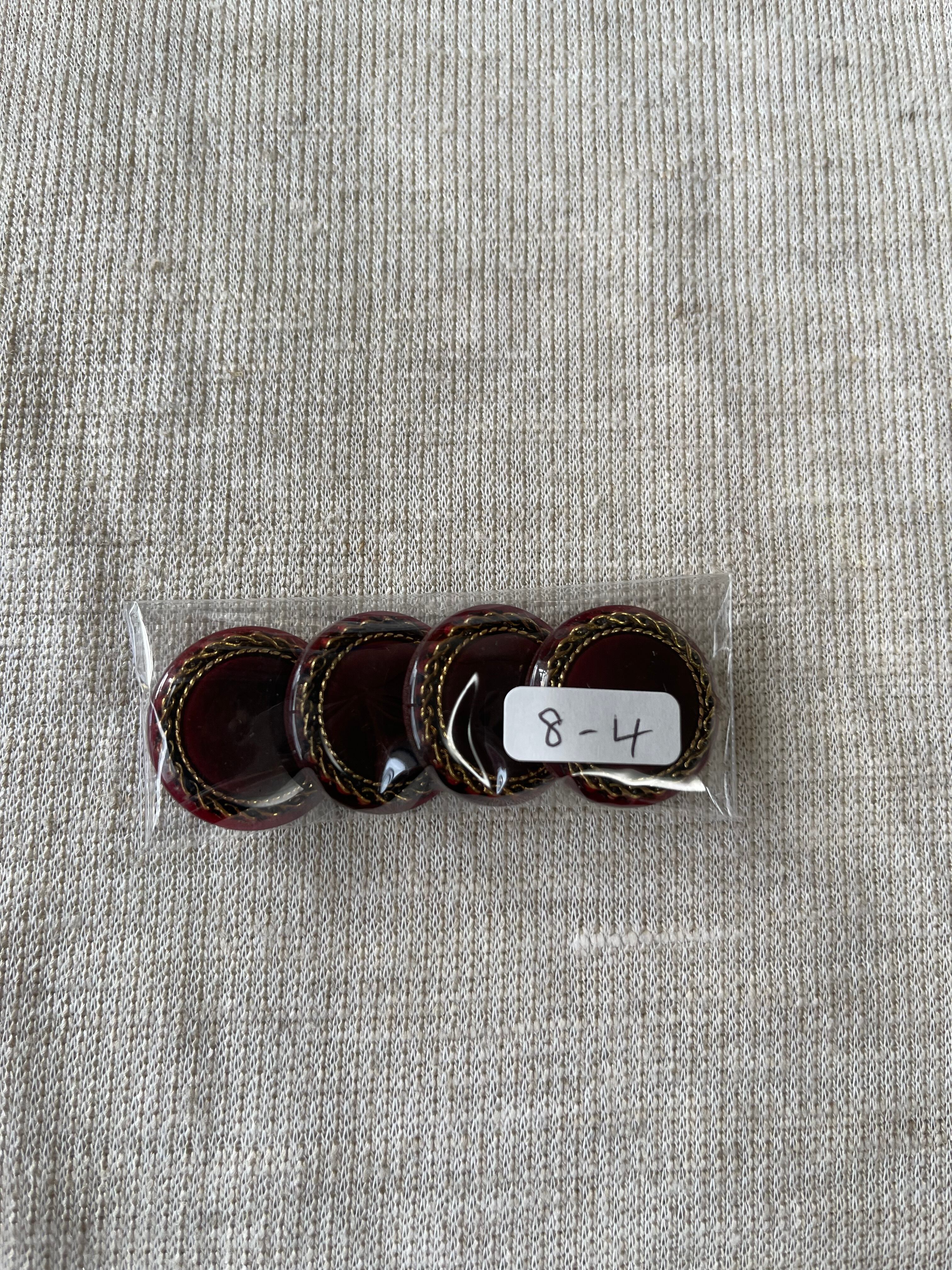 ボタン 4個 大 赤 レッド ヴィンテージ調ボタン 【8-4】