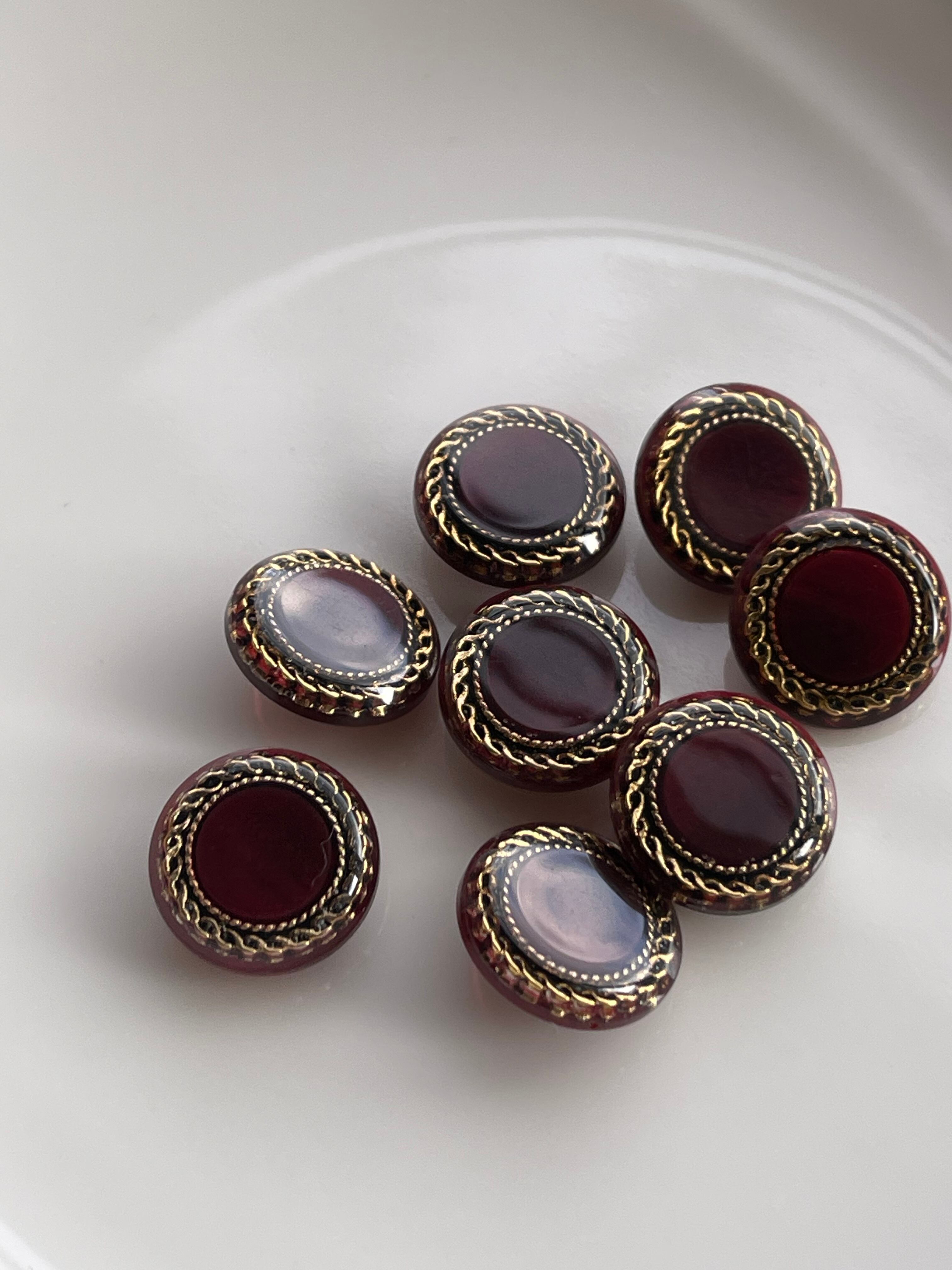 ボタン 8個 小 赤 レッド ヴィンテージ調ボタン 【8-3】