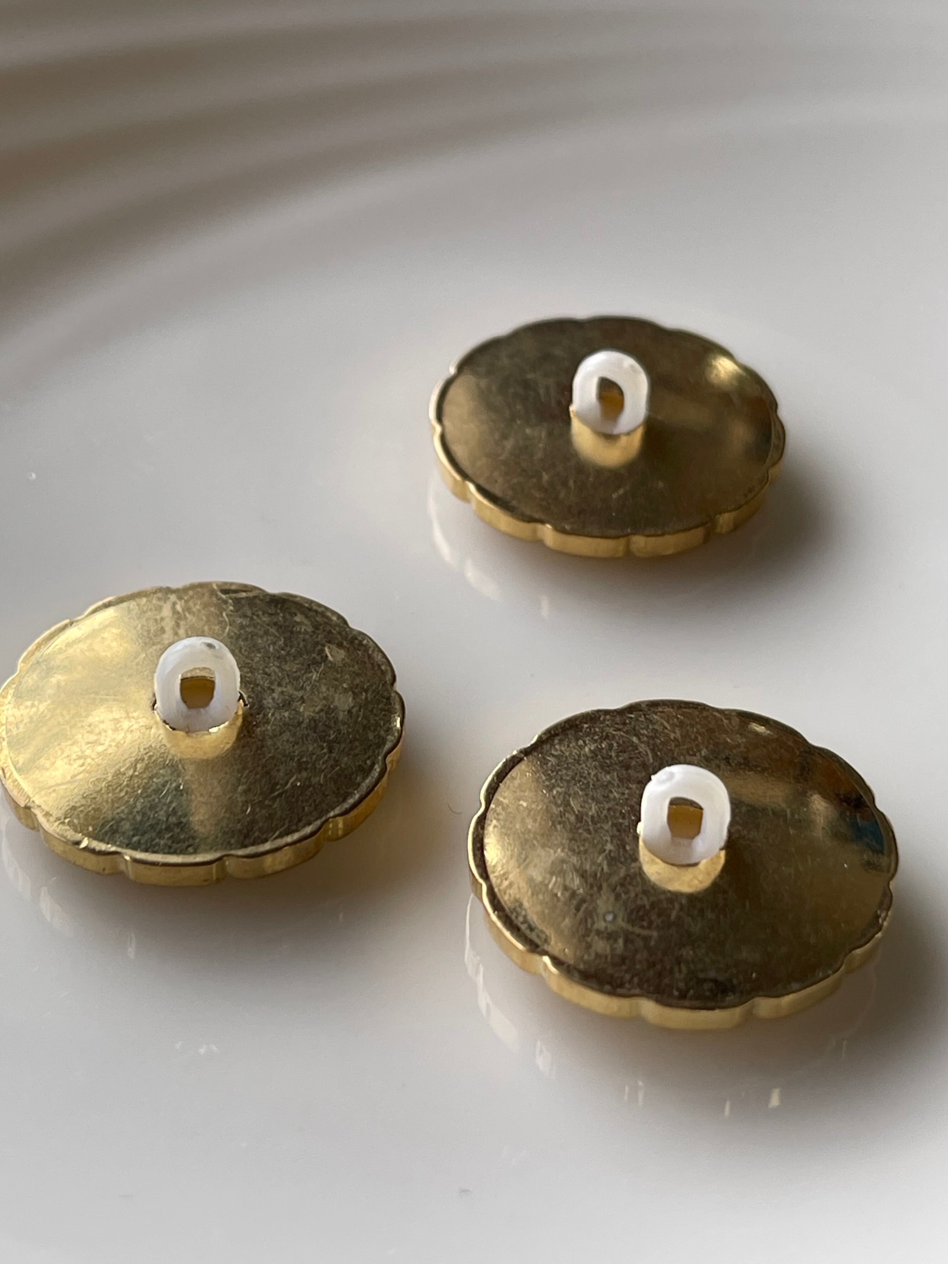 ボタン 3個 ゴールドホワイト 金白 【4-160】