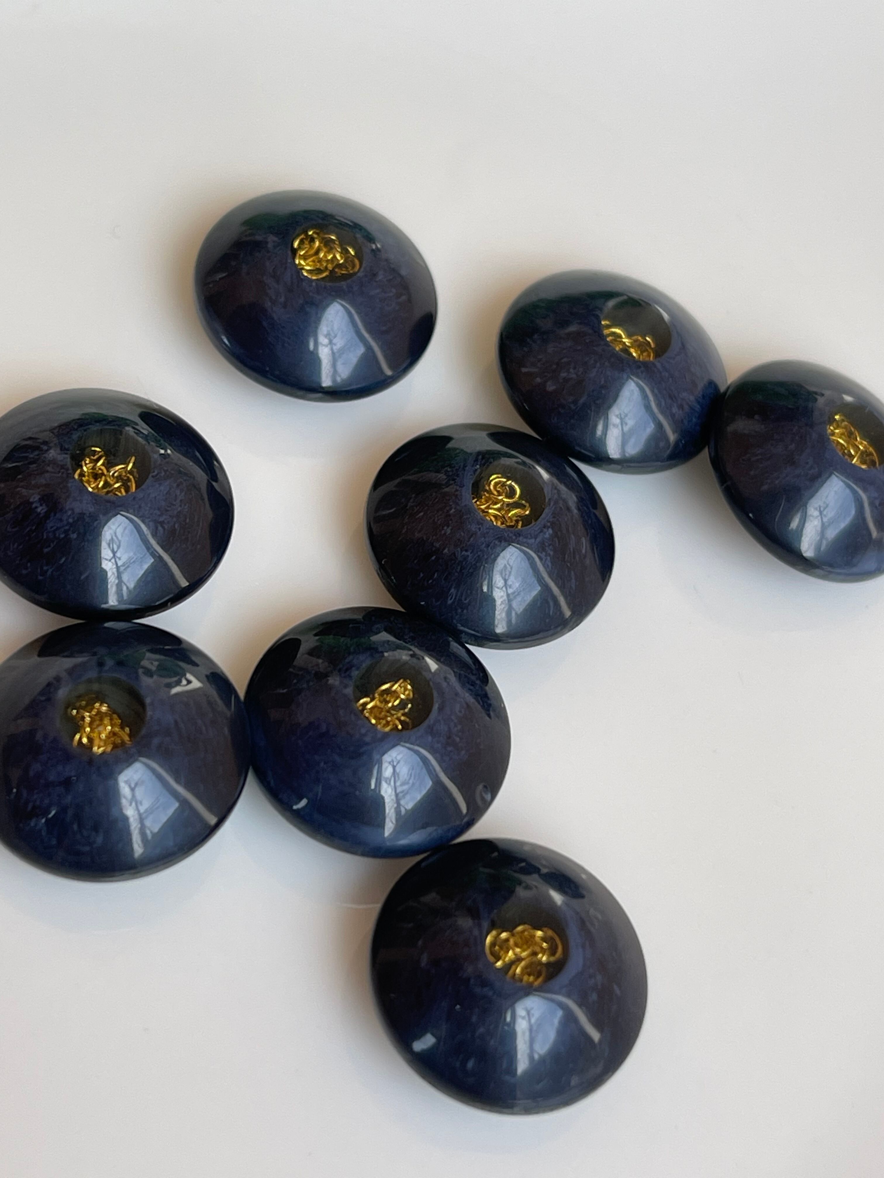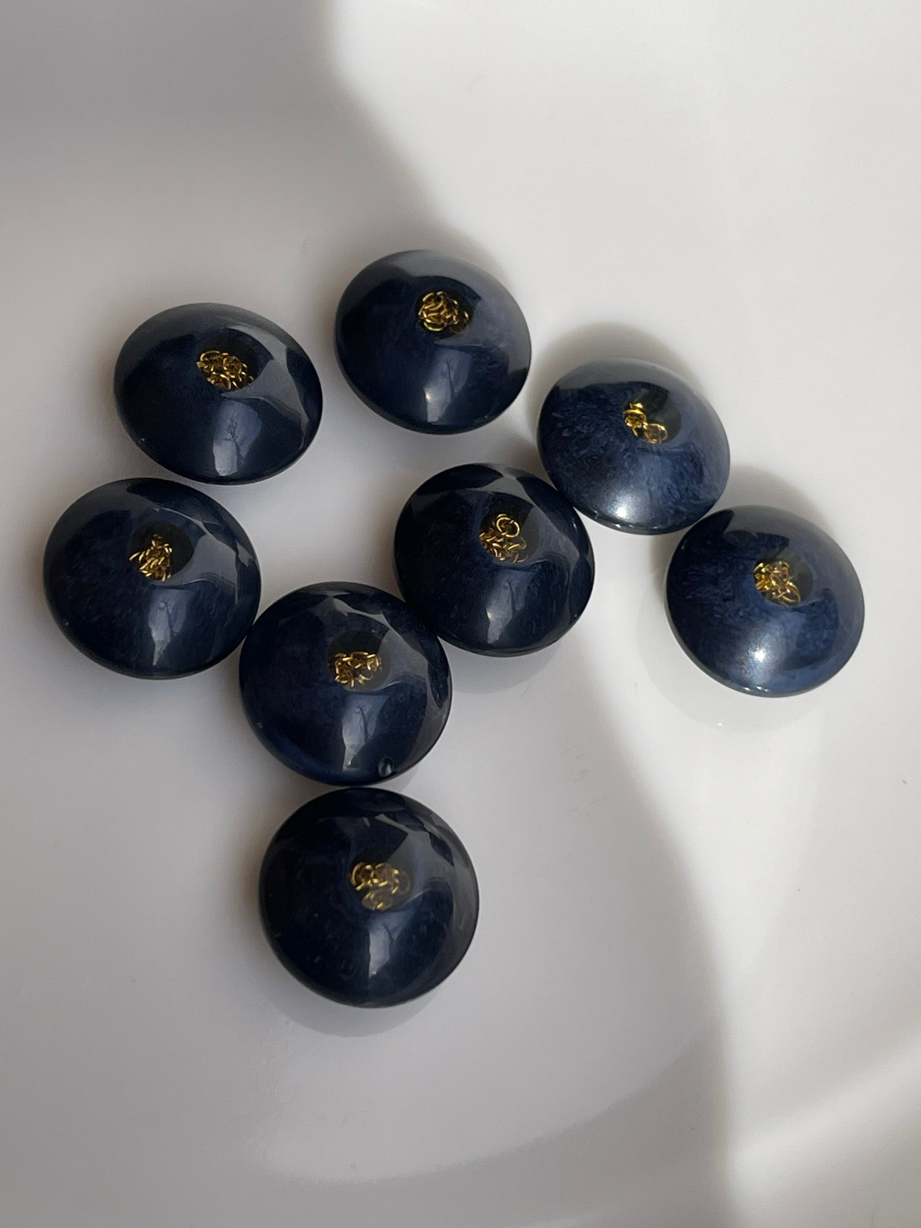 ボタン 8個 小 青ネイビー系 ゴールド【5-186】