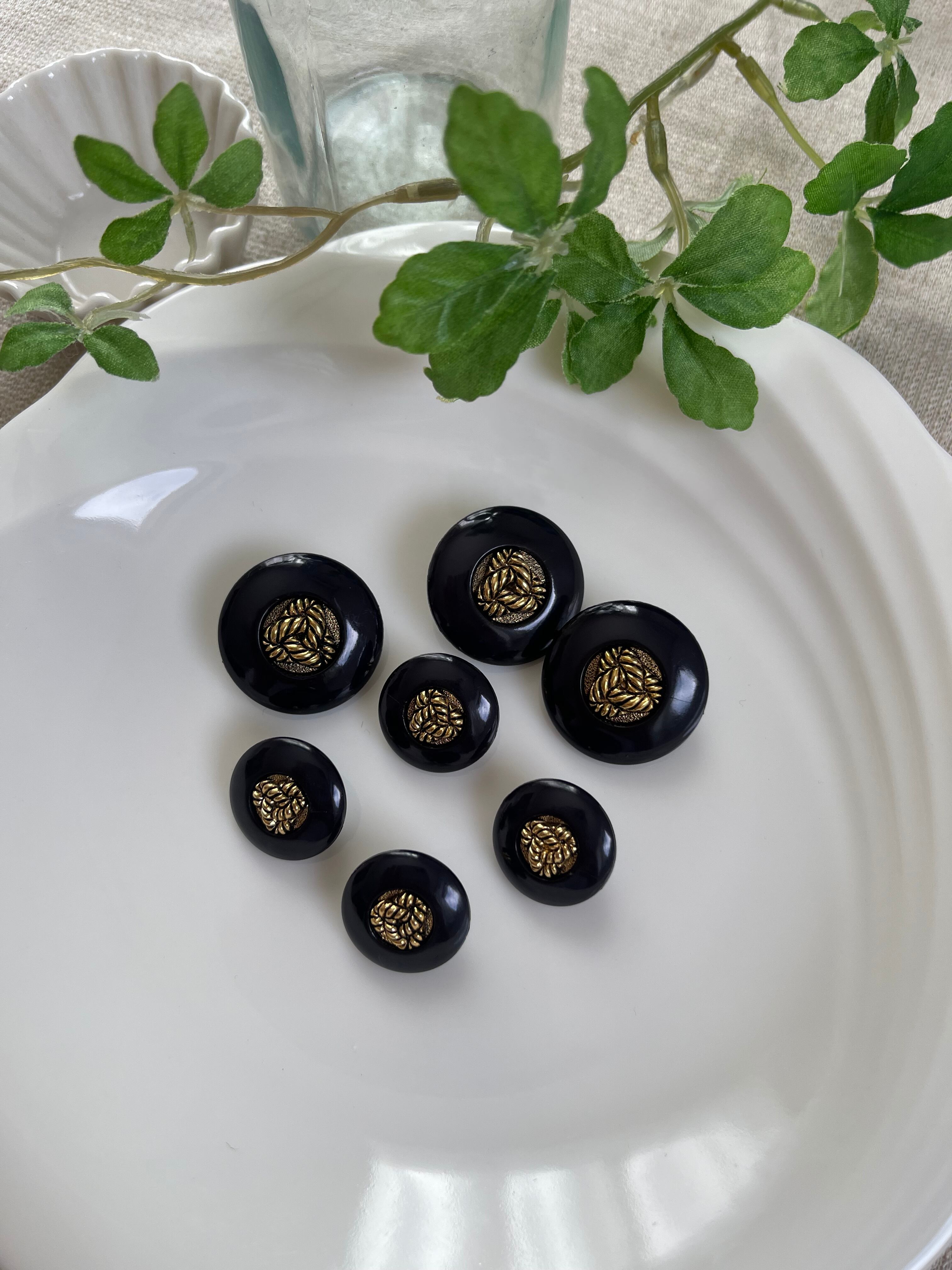 ボタン 7個大小セット ブラック系 【4-189】