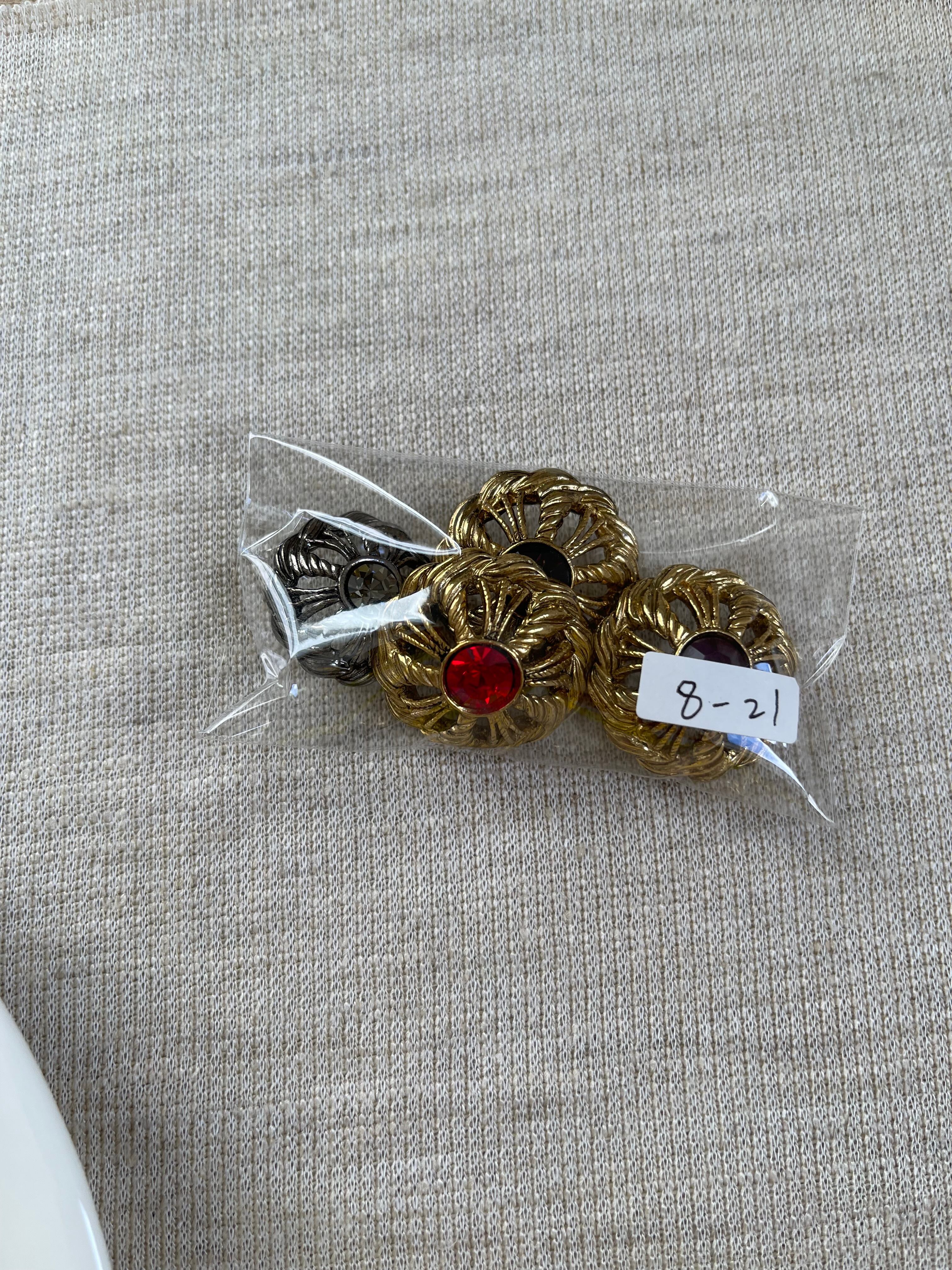 ボタン 4個大中セット ゴールドシルバー系 ストーン付 ヴィンテージ調 【8-21】