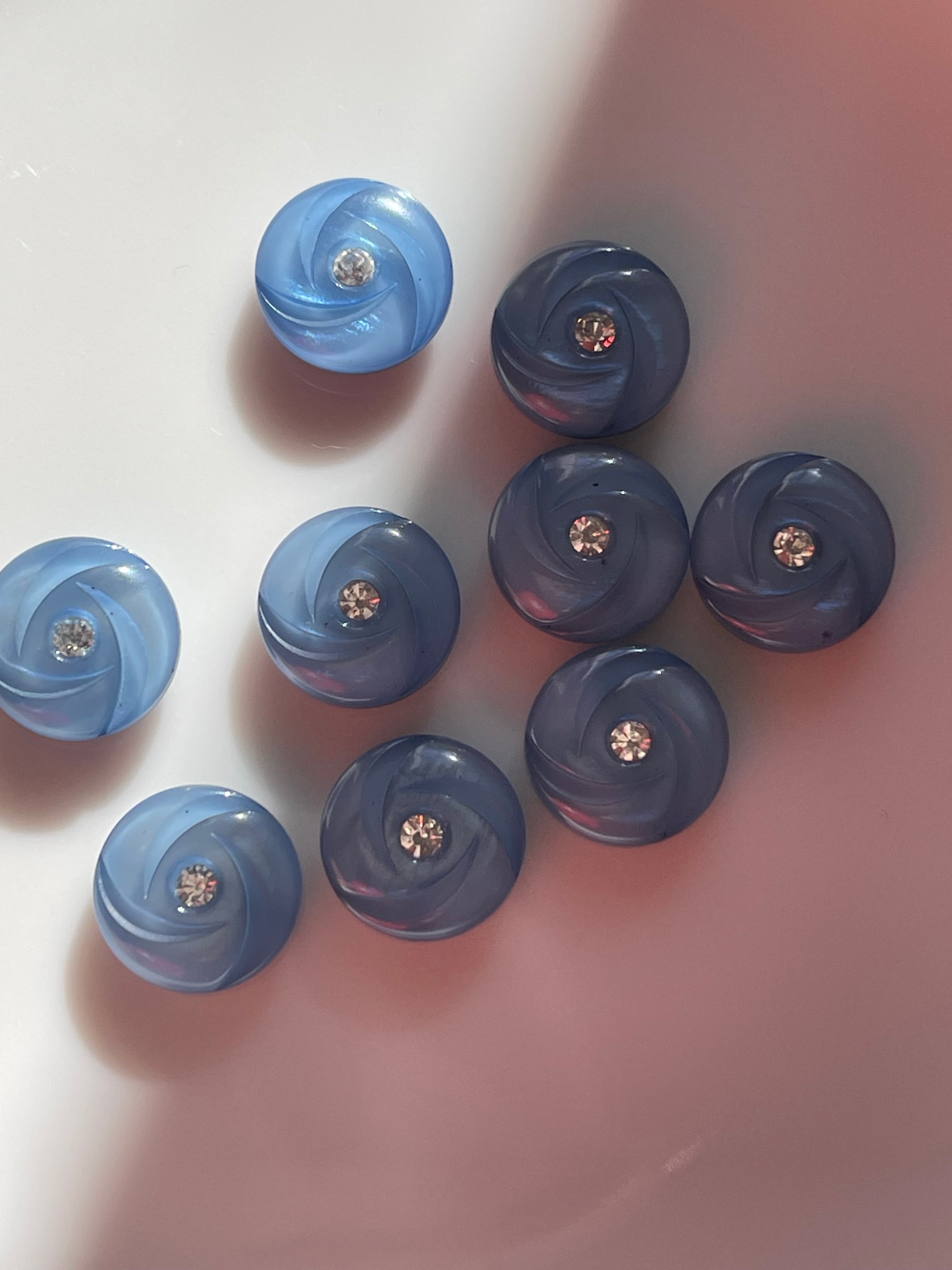 ボタン 9個 ブルー系 小ぶり ストーン付【4-202】