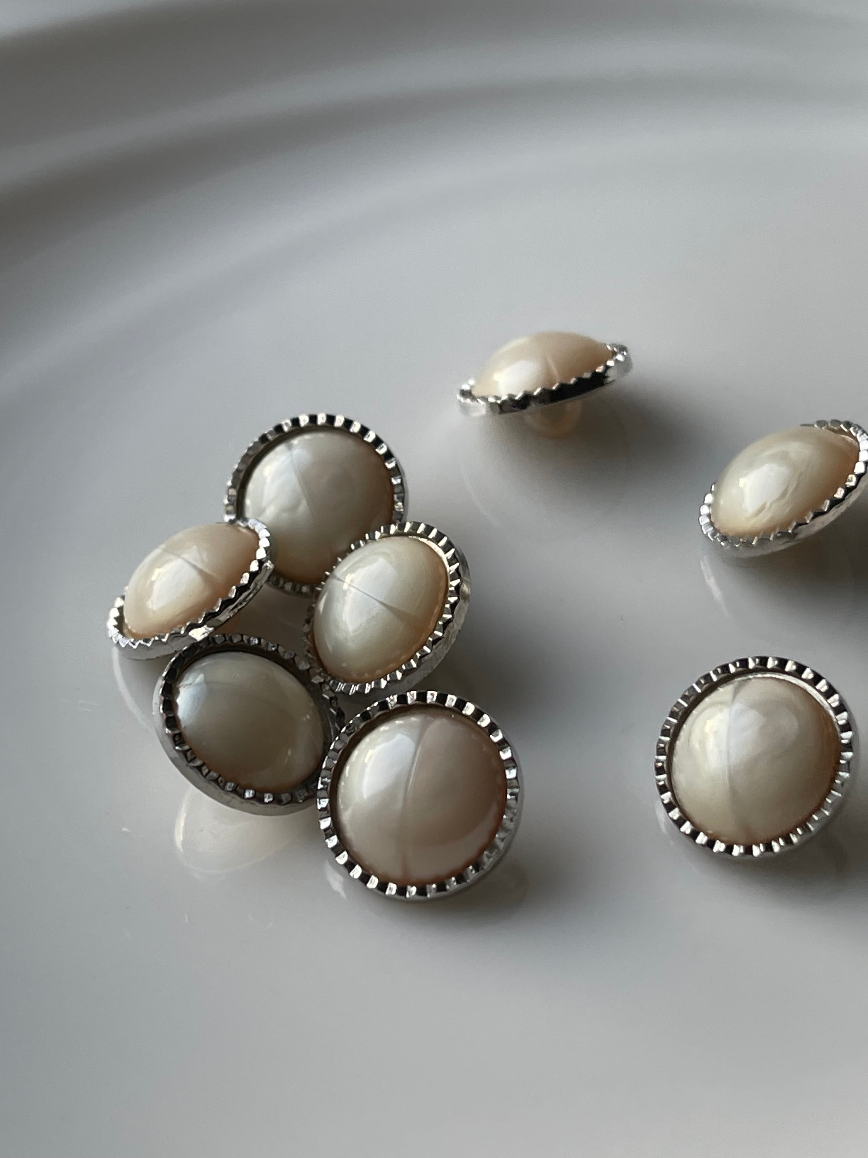 ボタン 8個 ホワイト シルバー系【2-176】
