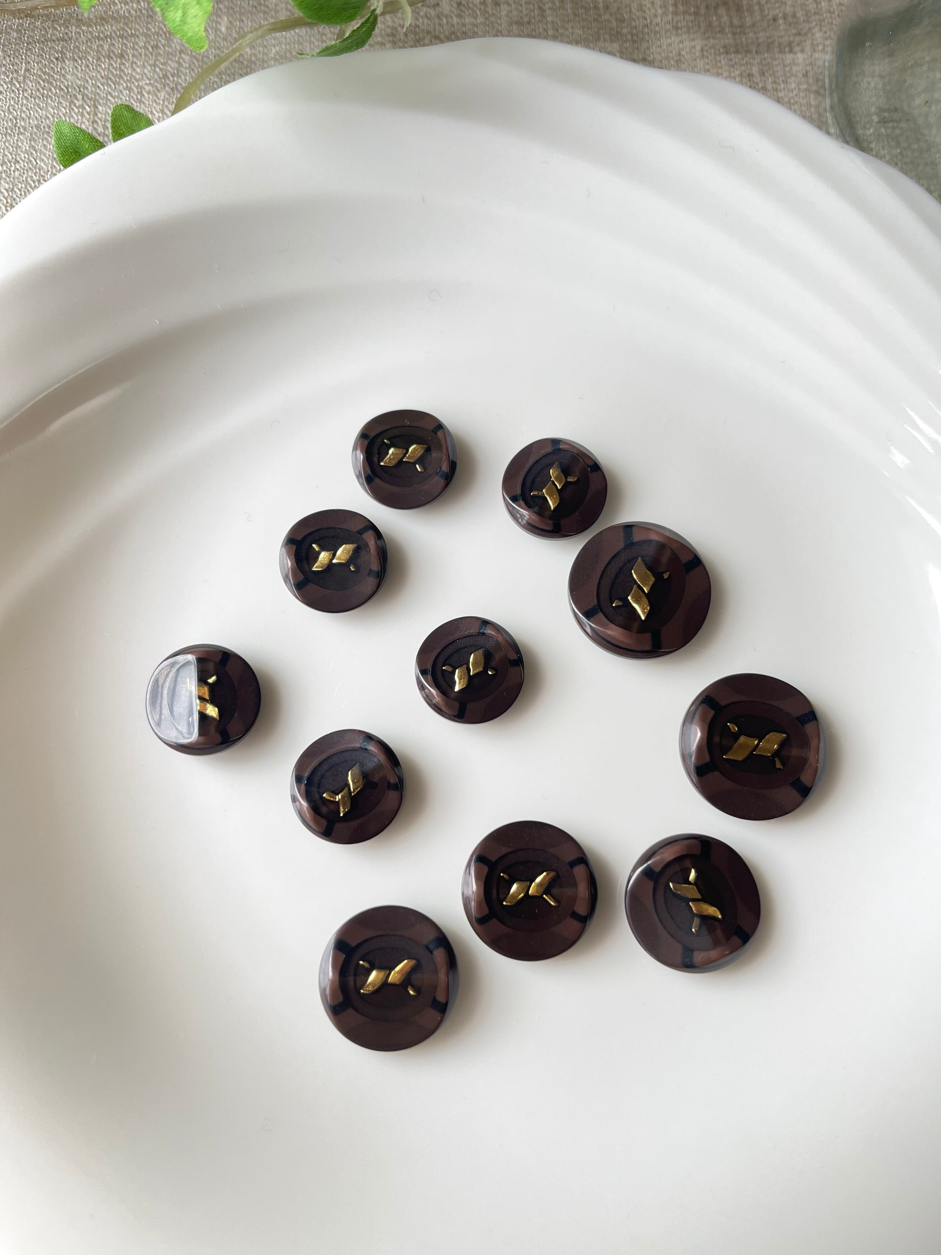 ボタン 11個 大中小セット 濃茶色系 【5-18】