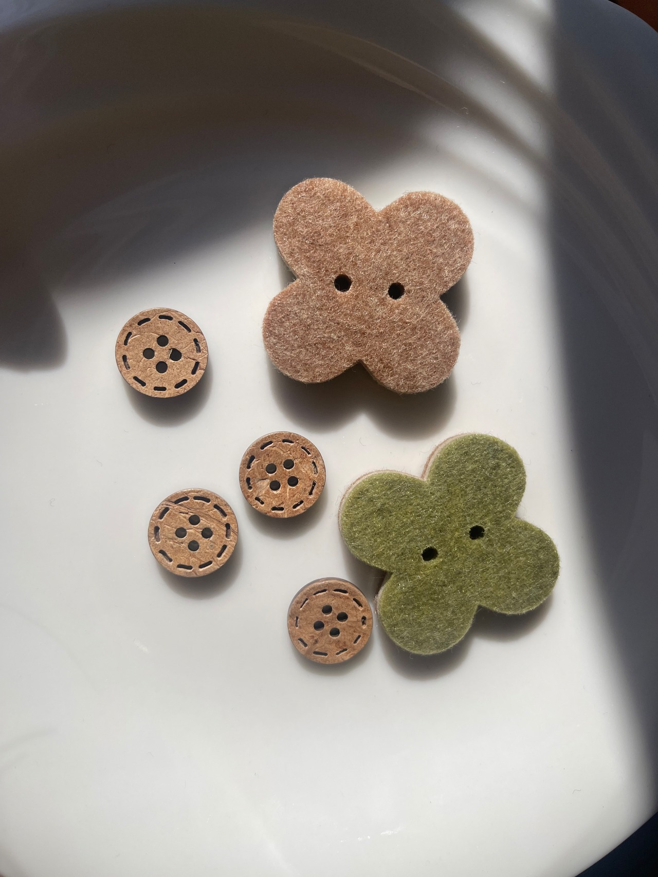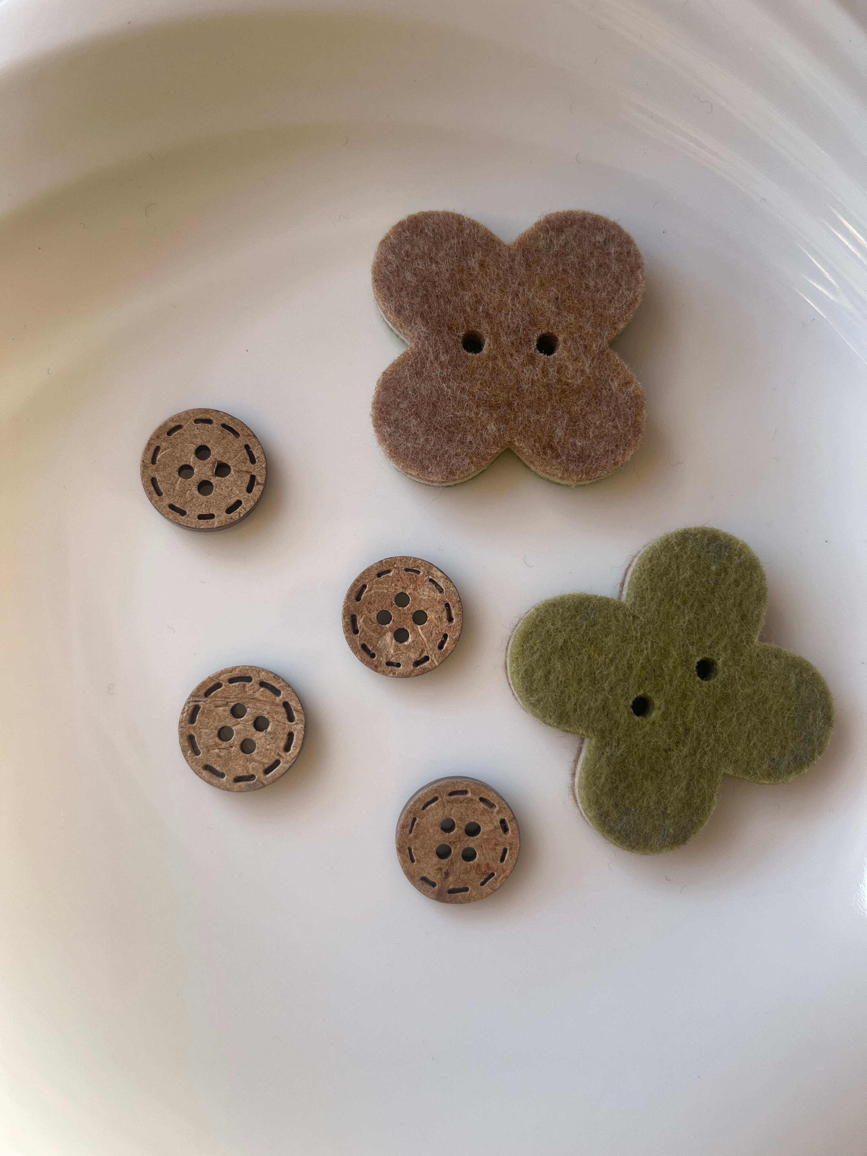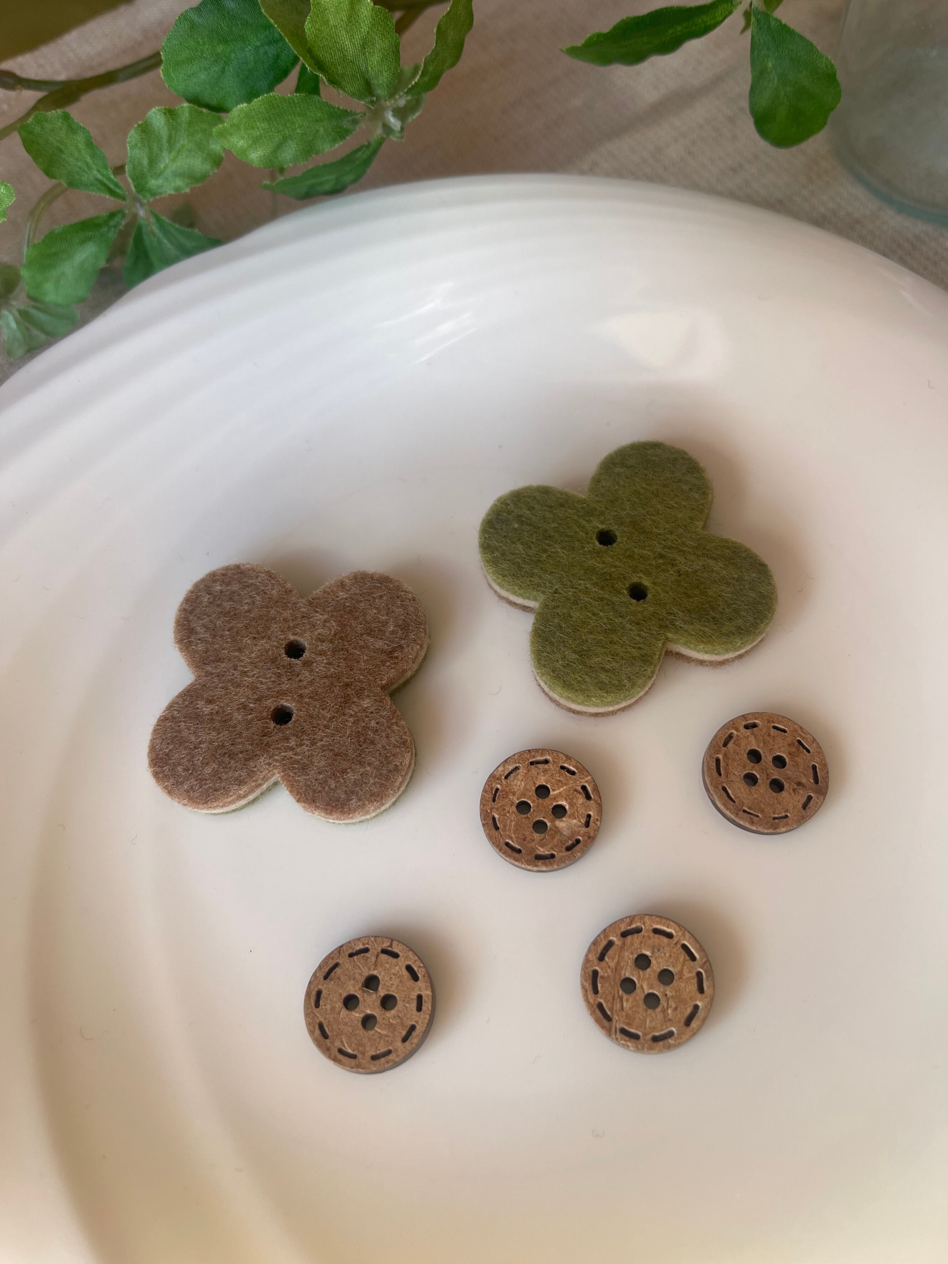 ボタン 2種類6個セット 木製 フェルト生地 クローバー 【1-1】