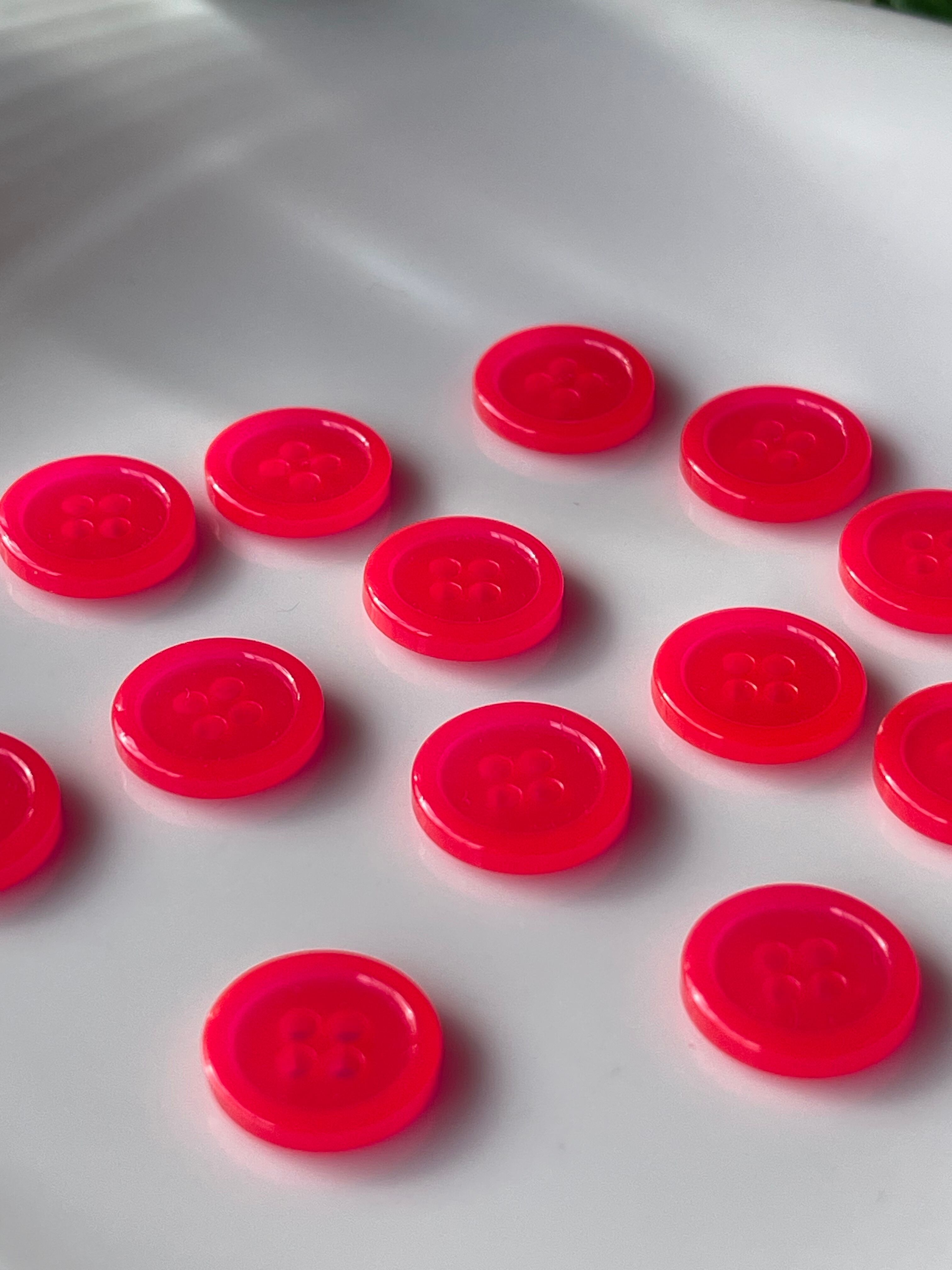 ボタン 13個 蛍光ピンクレッド 【2-35】