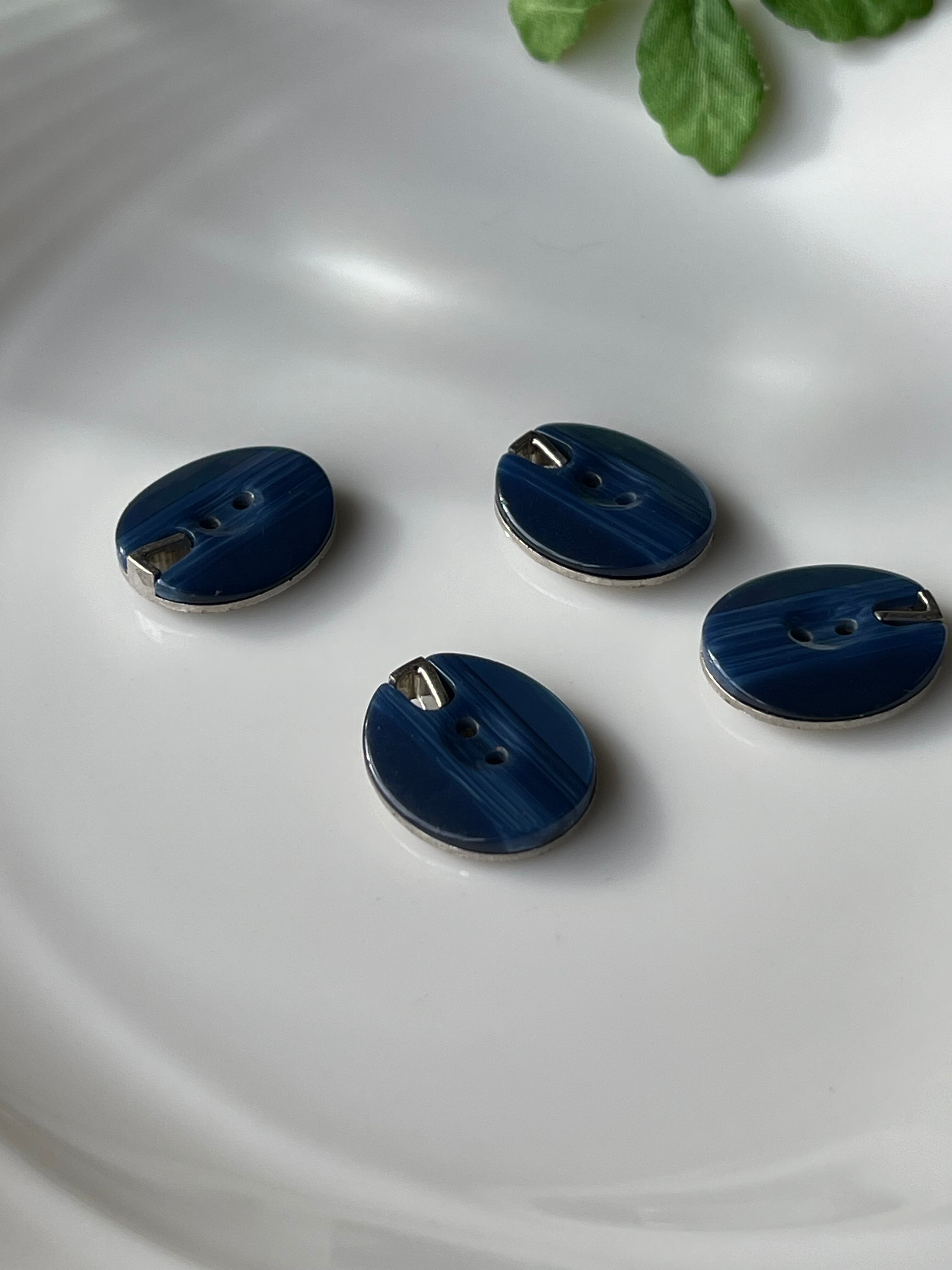 ボタン 4個 青 ブルー 楕円形 【2-37】