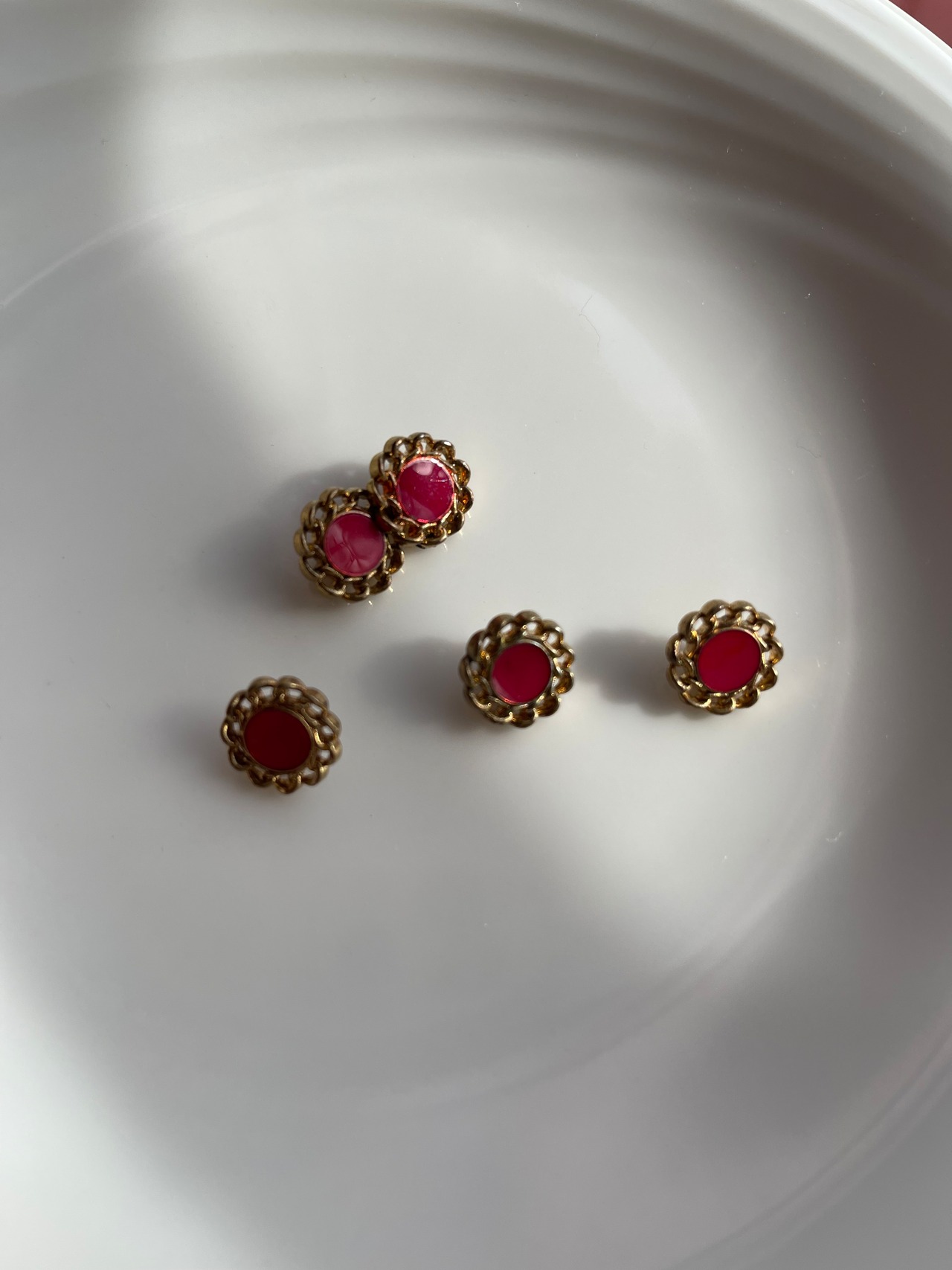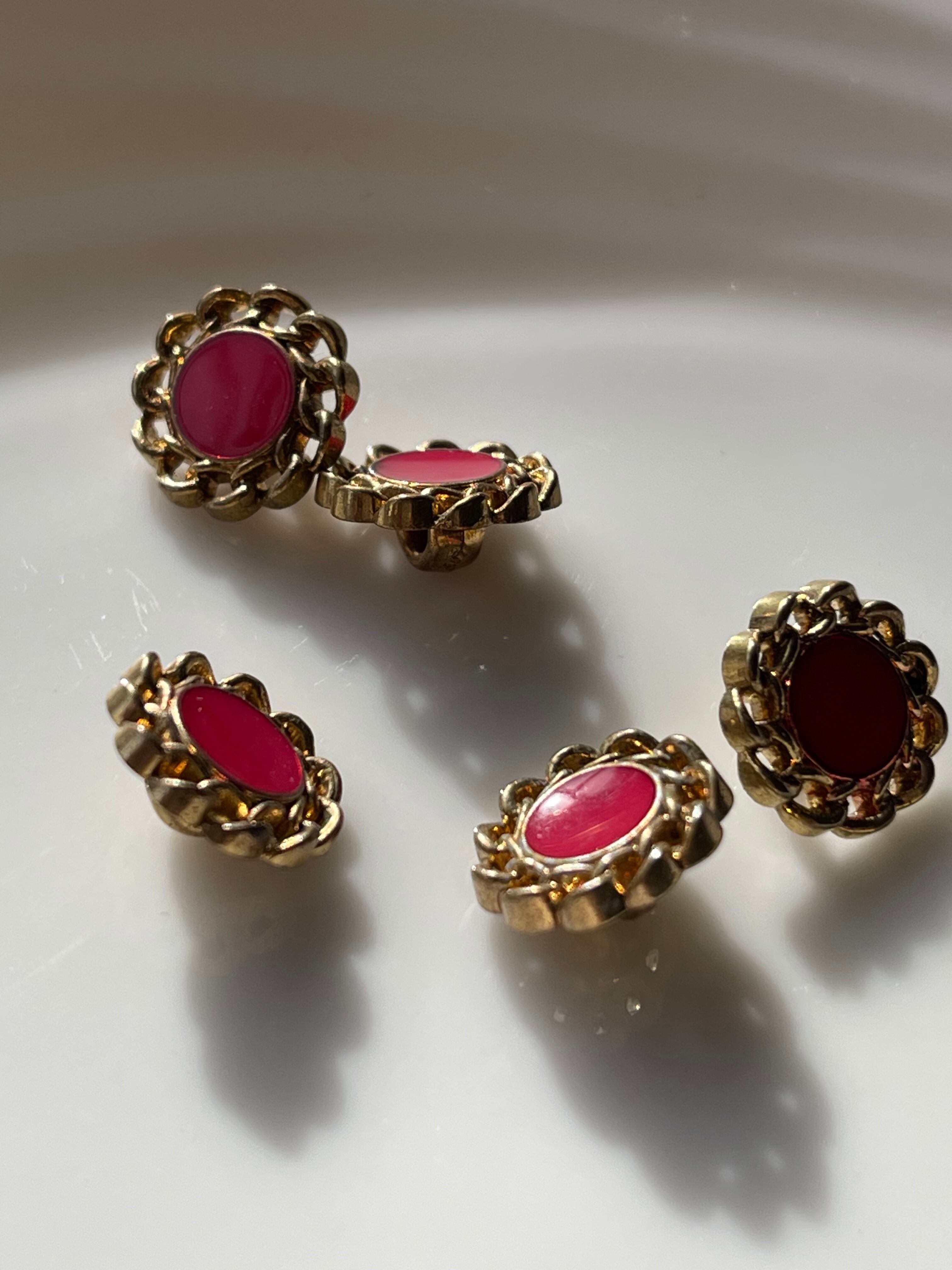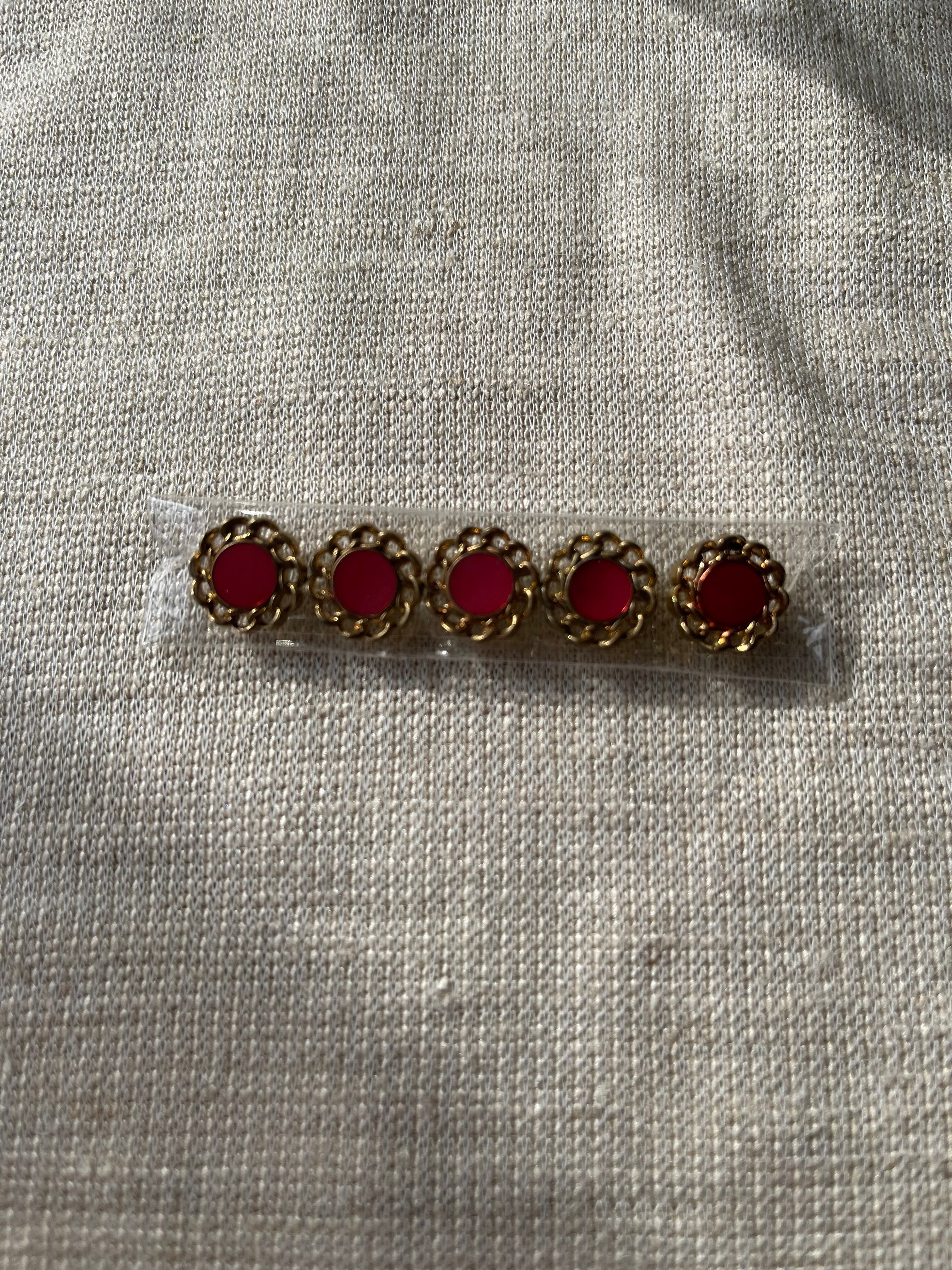 ボタン 5個 赤系 ヴィンテージボタン 【2-39】
