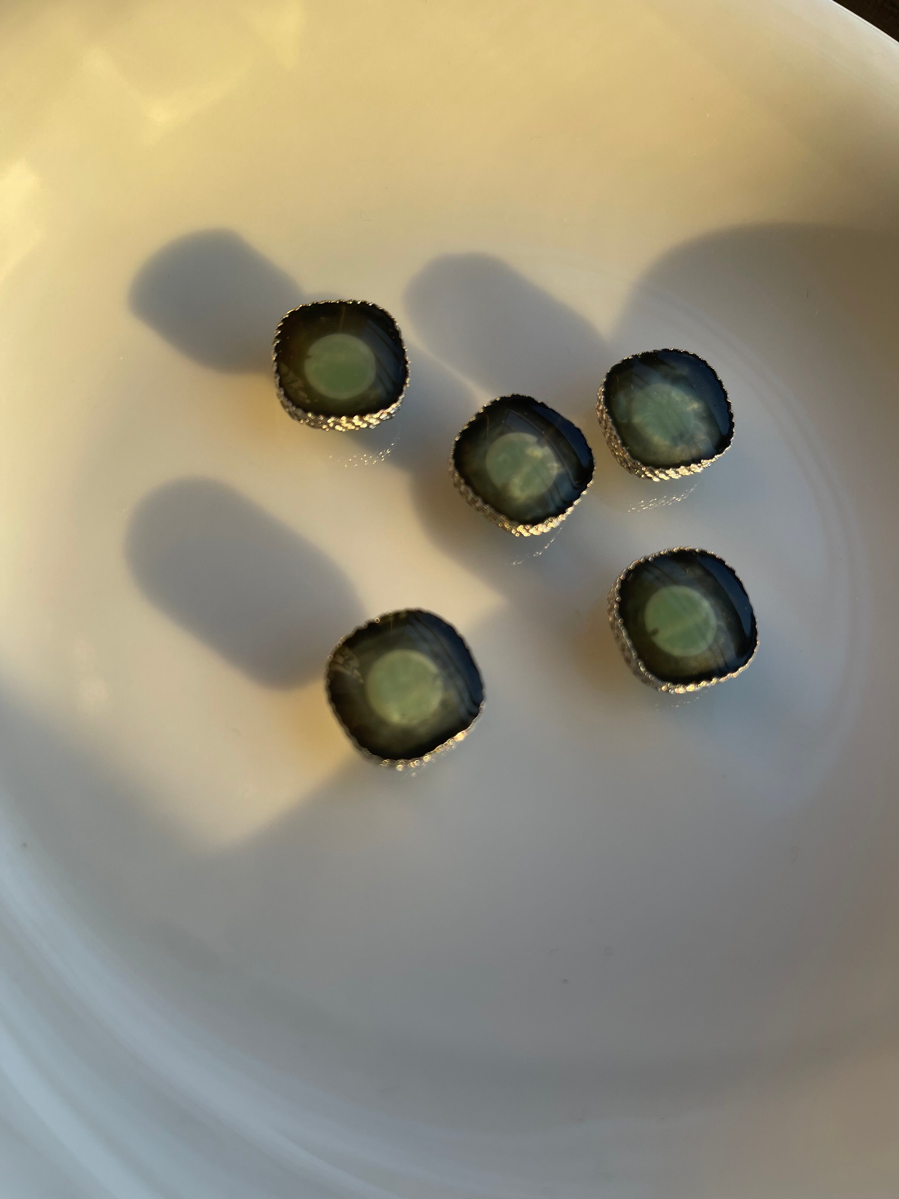 ボタン 5個 グリーン系 ヴィンテージボタン 【2-52】