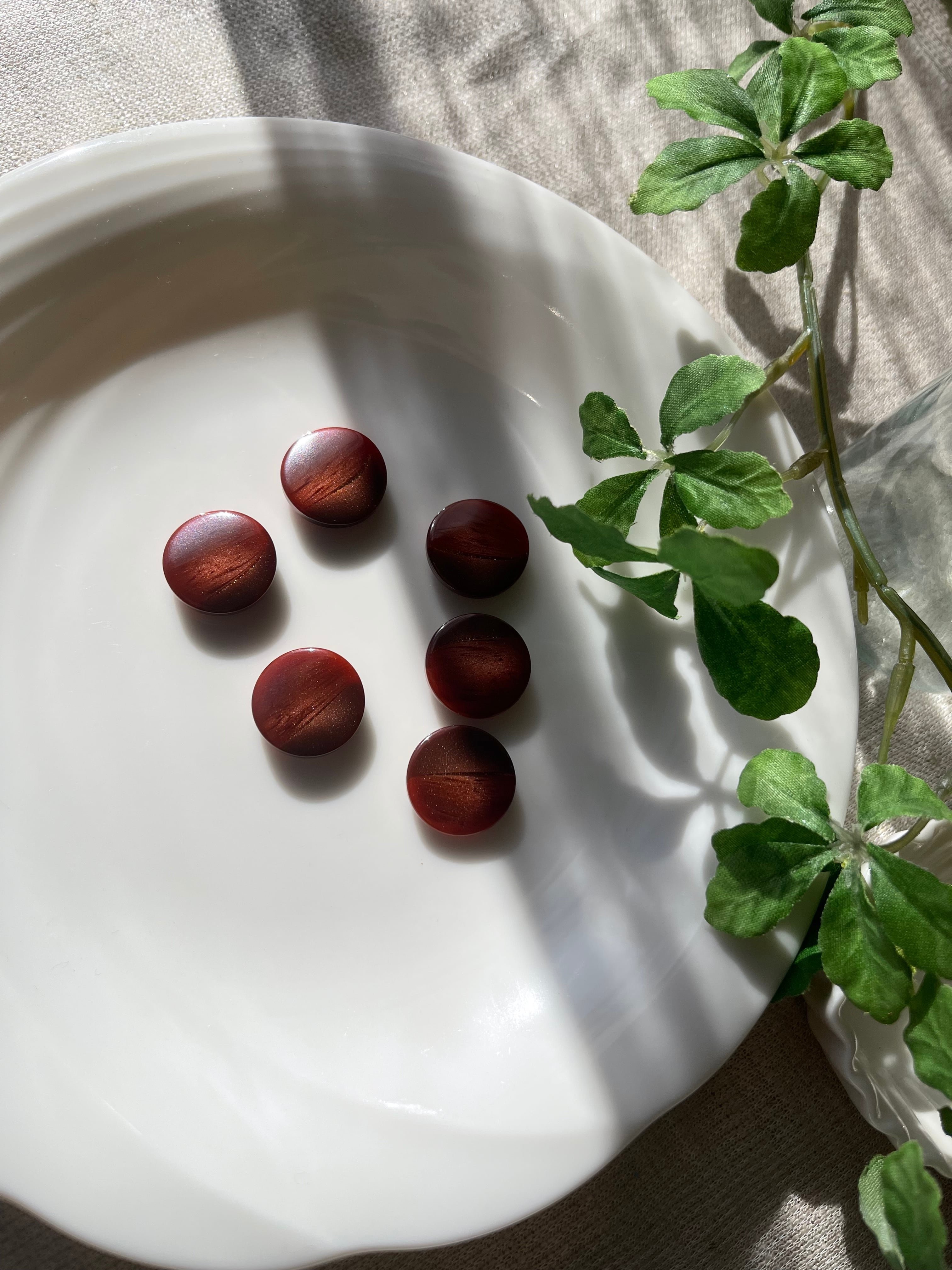 ボタン 6個 大 赤系 【3-11】