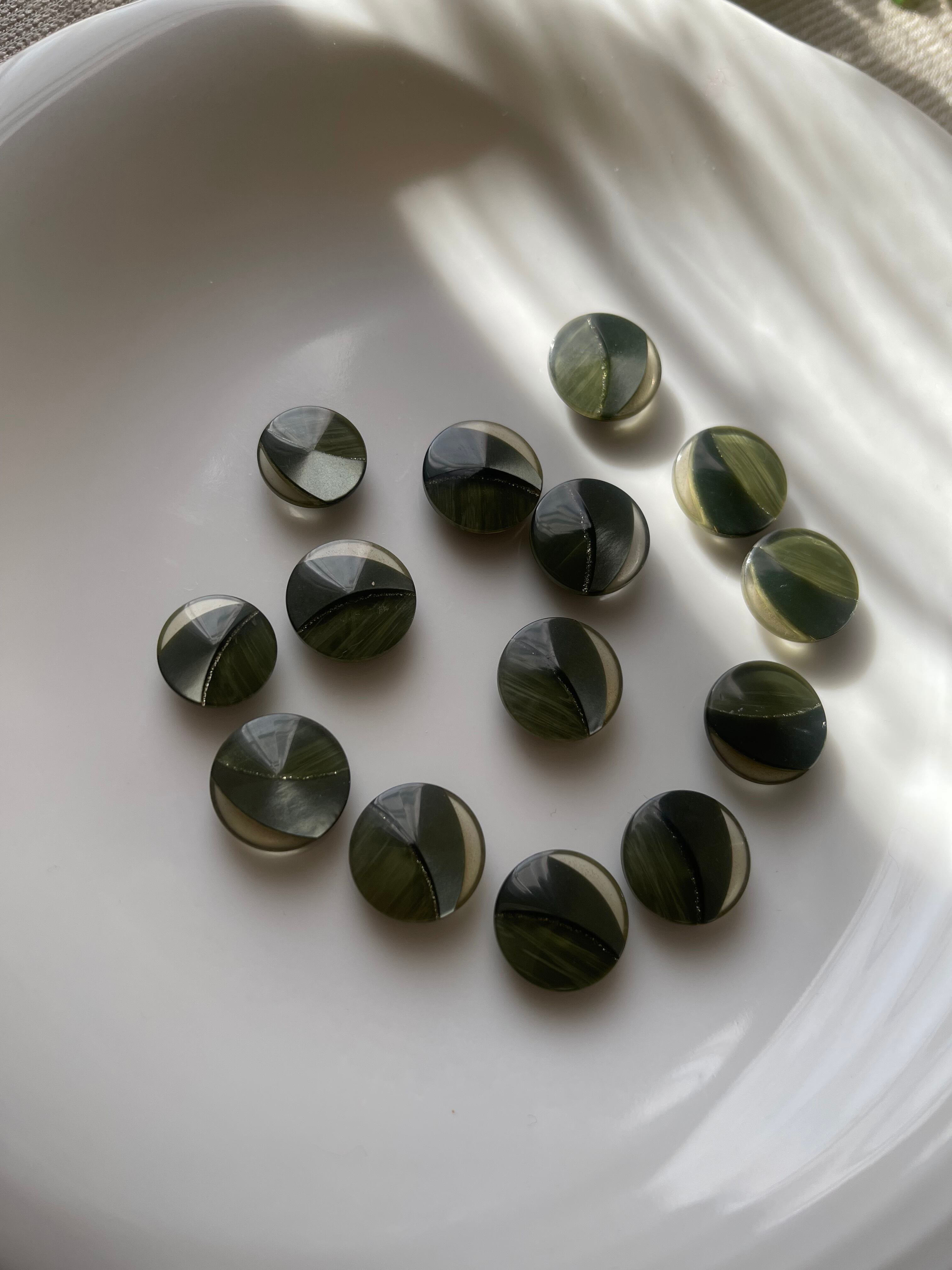 ボタン 14個 大小セット 緑 グリーン系 【5-43】