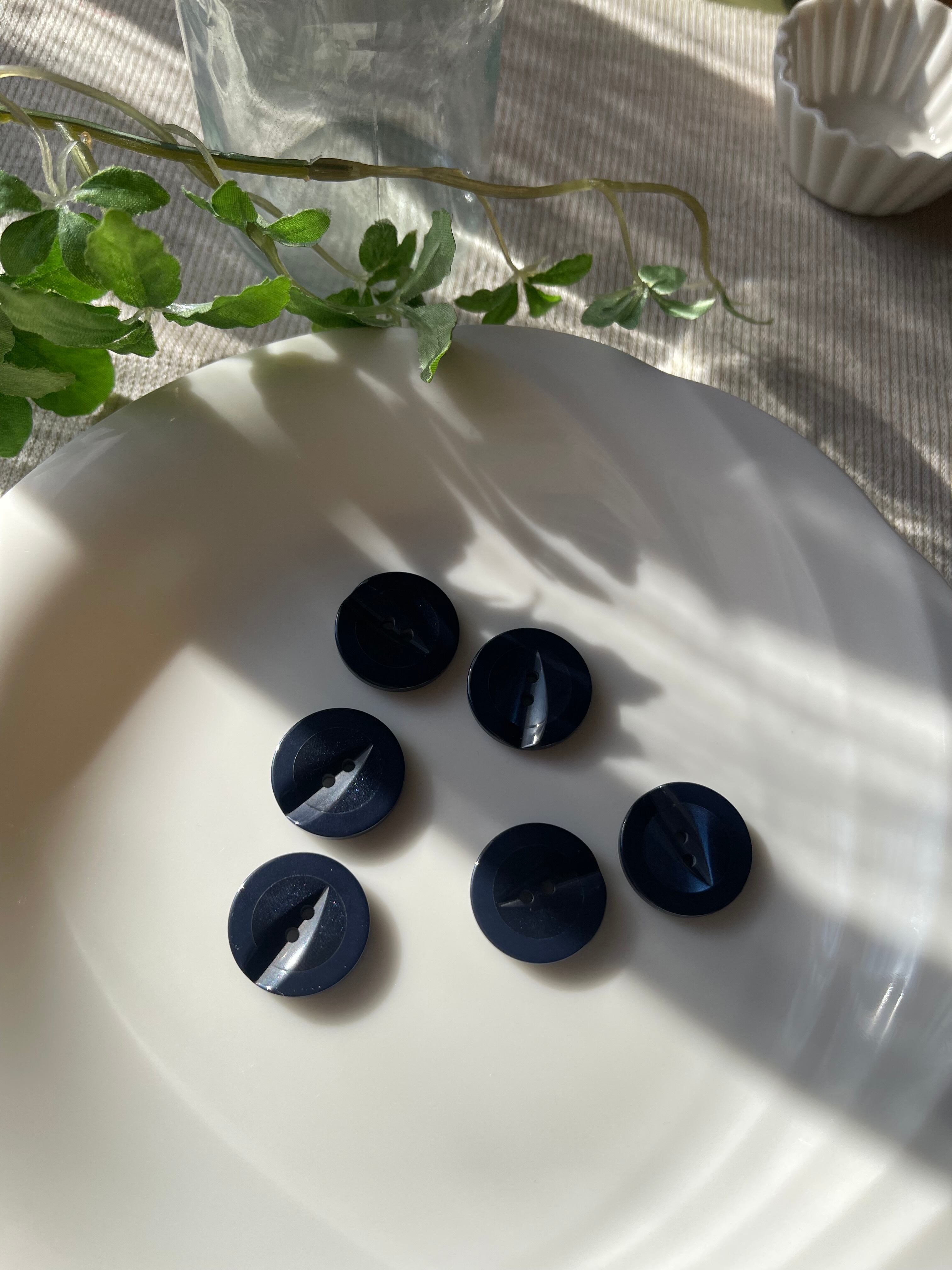 ボタン 6個 中 青 ブルー 【3-45】