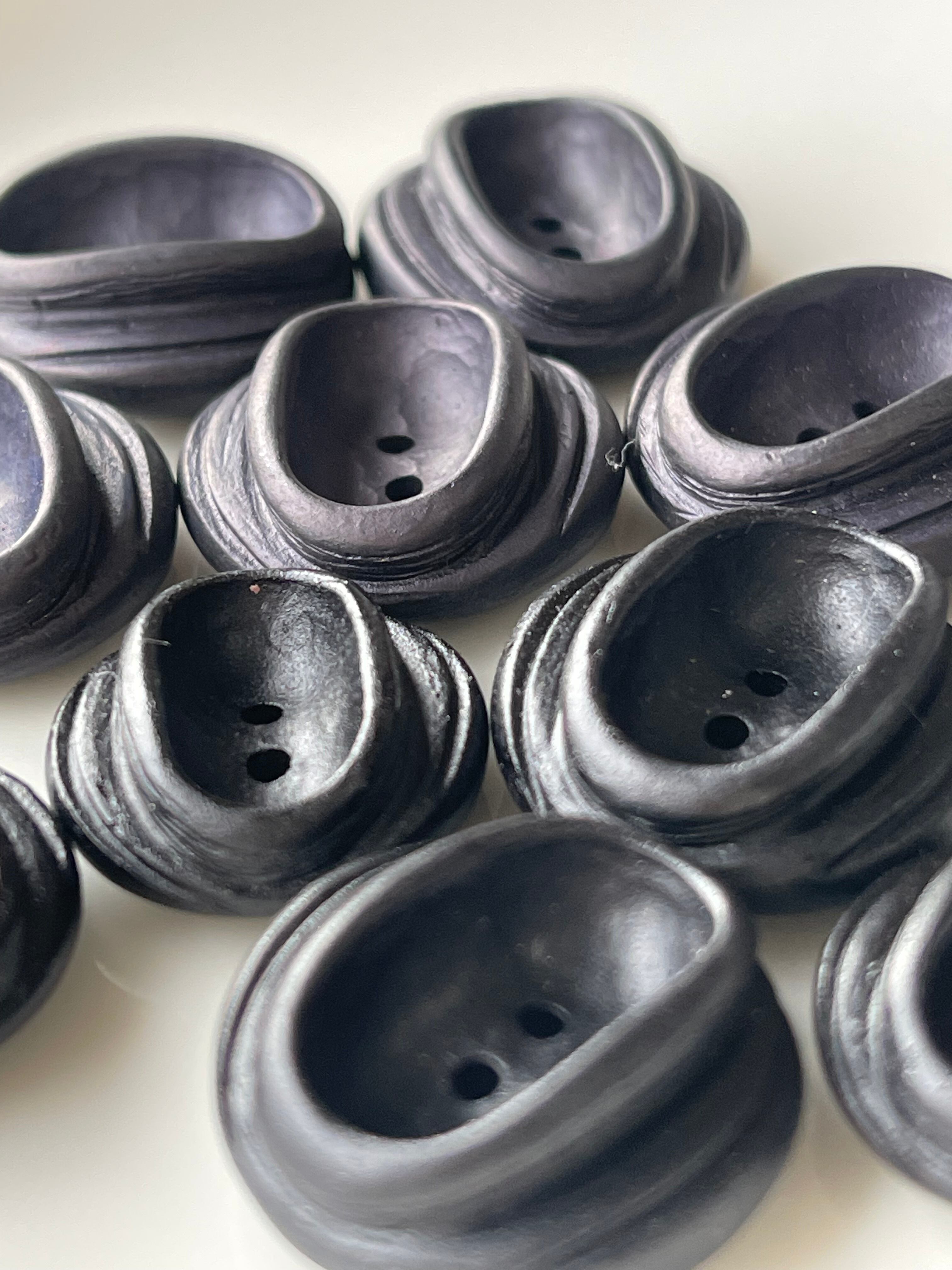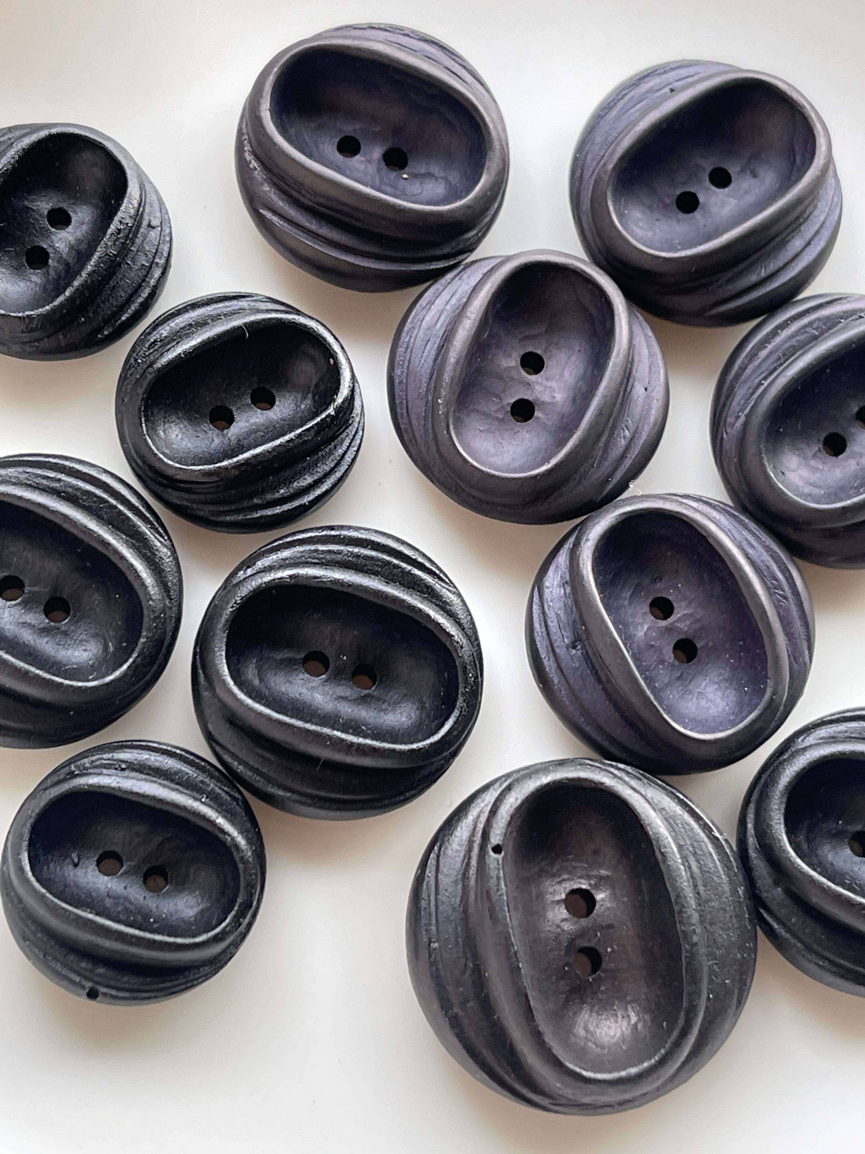 ボタン 12個 大中小2色セット レトロ 黒 深紫 パープルブラック 【6-8】