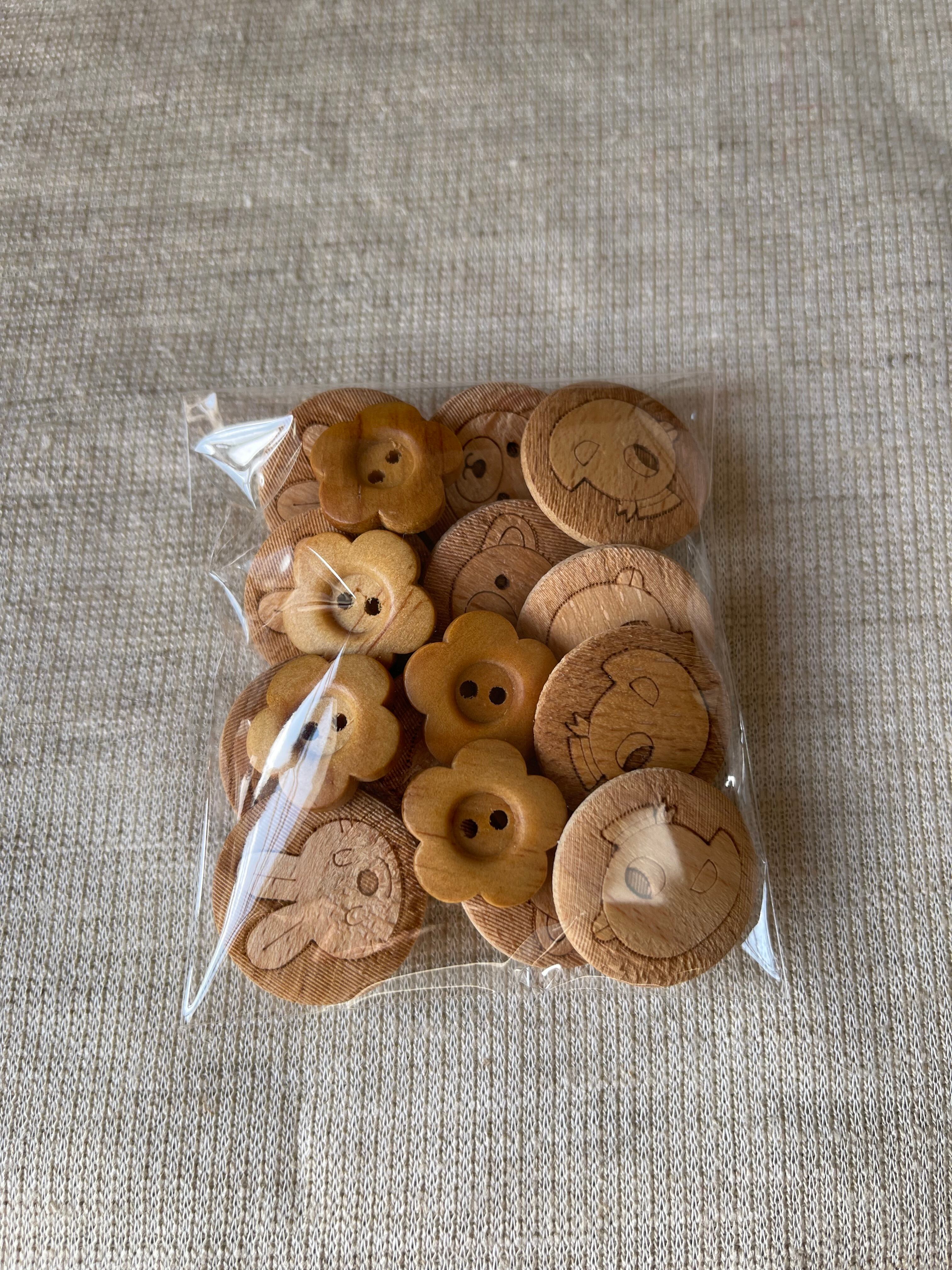 ボタン 17個セット 木製 かわいい動物 うさぎ クマ ヒヨコ 花型 【10-1】