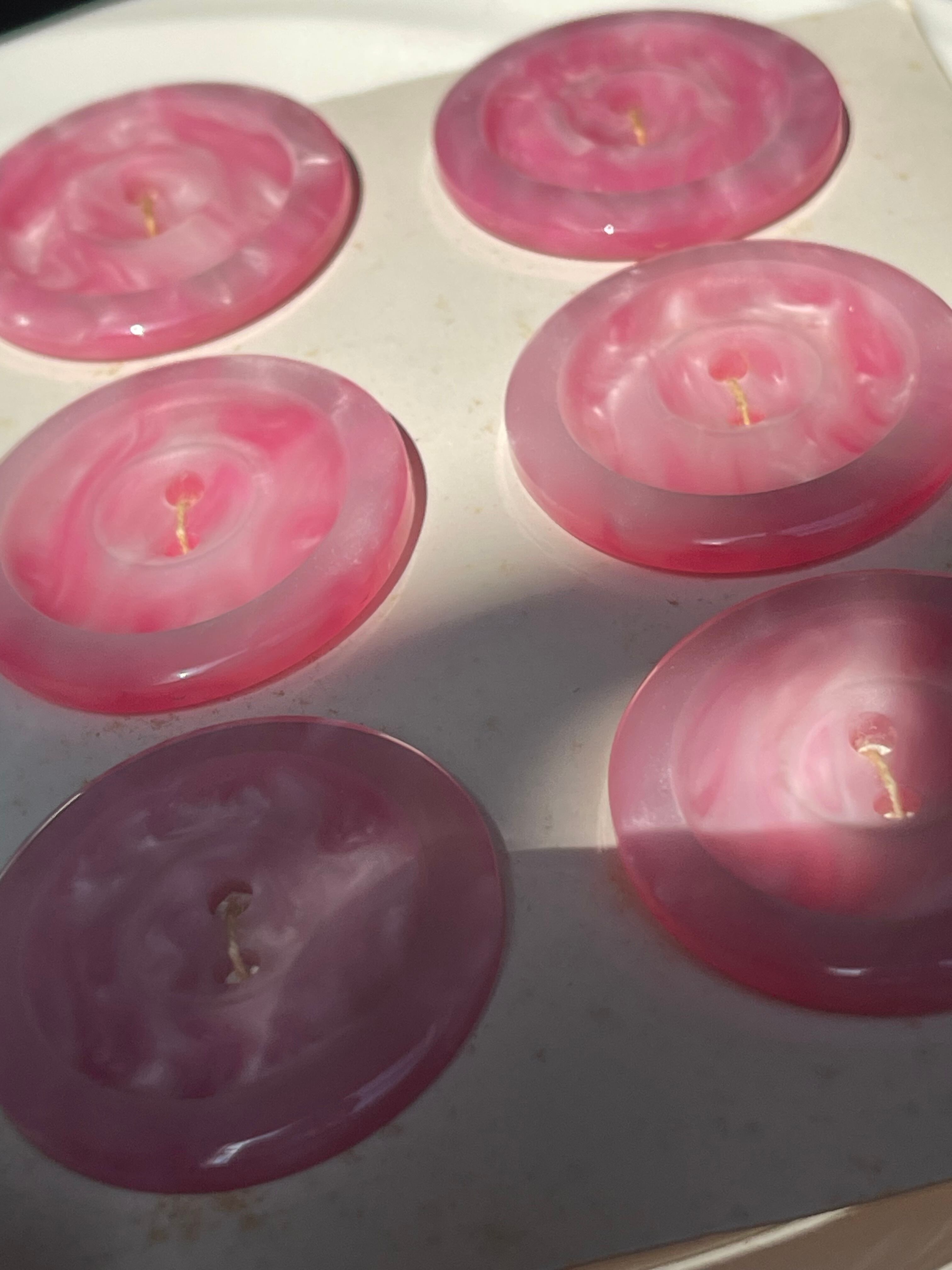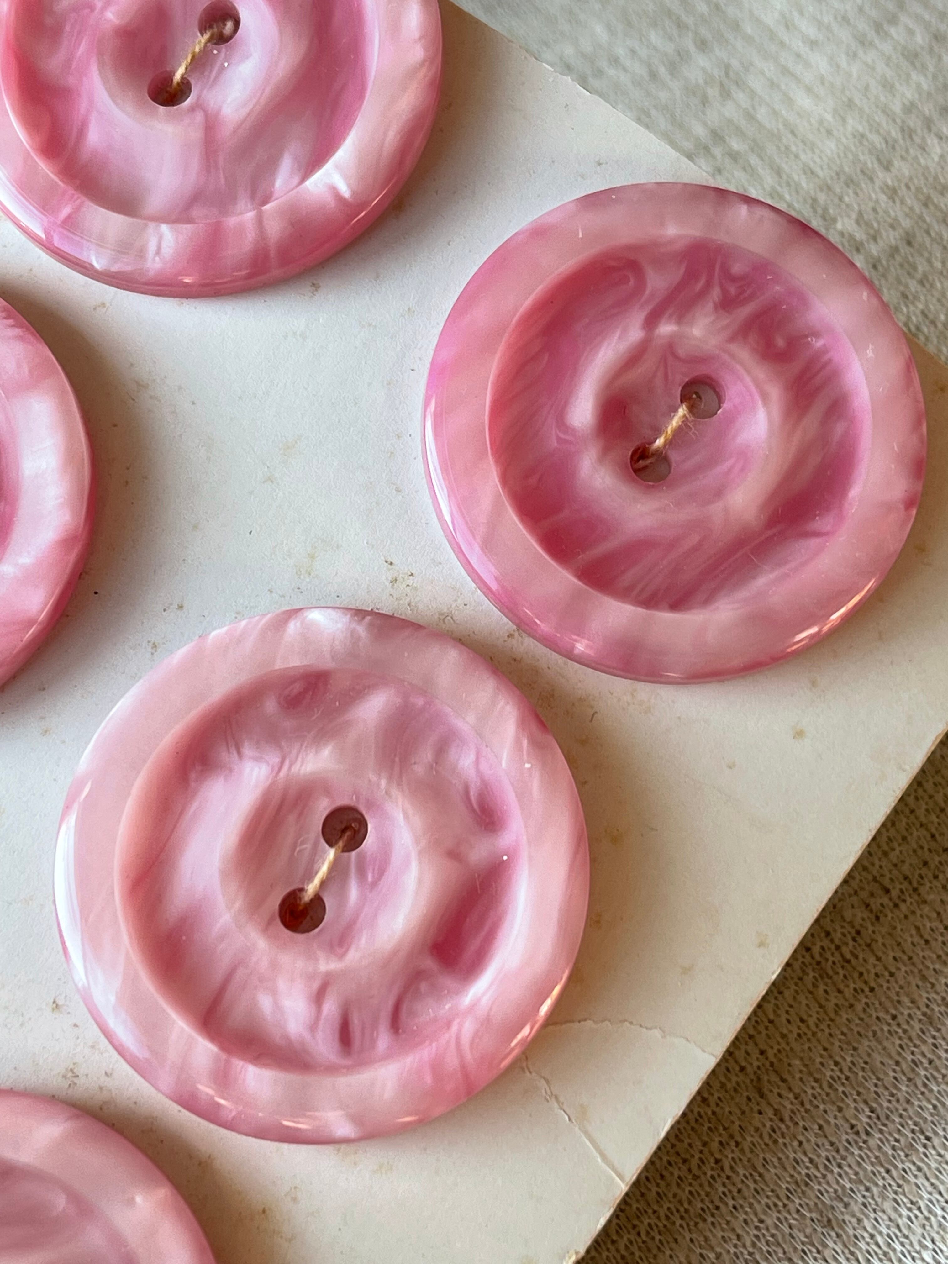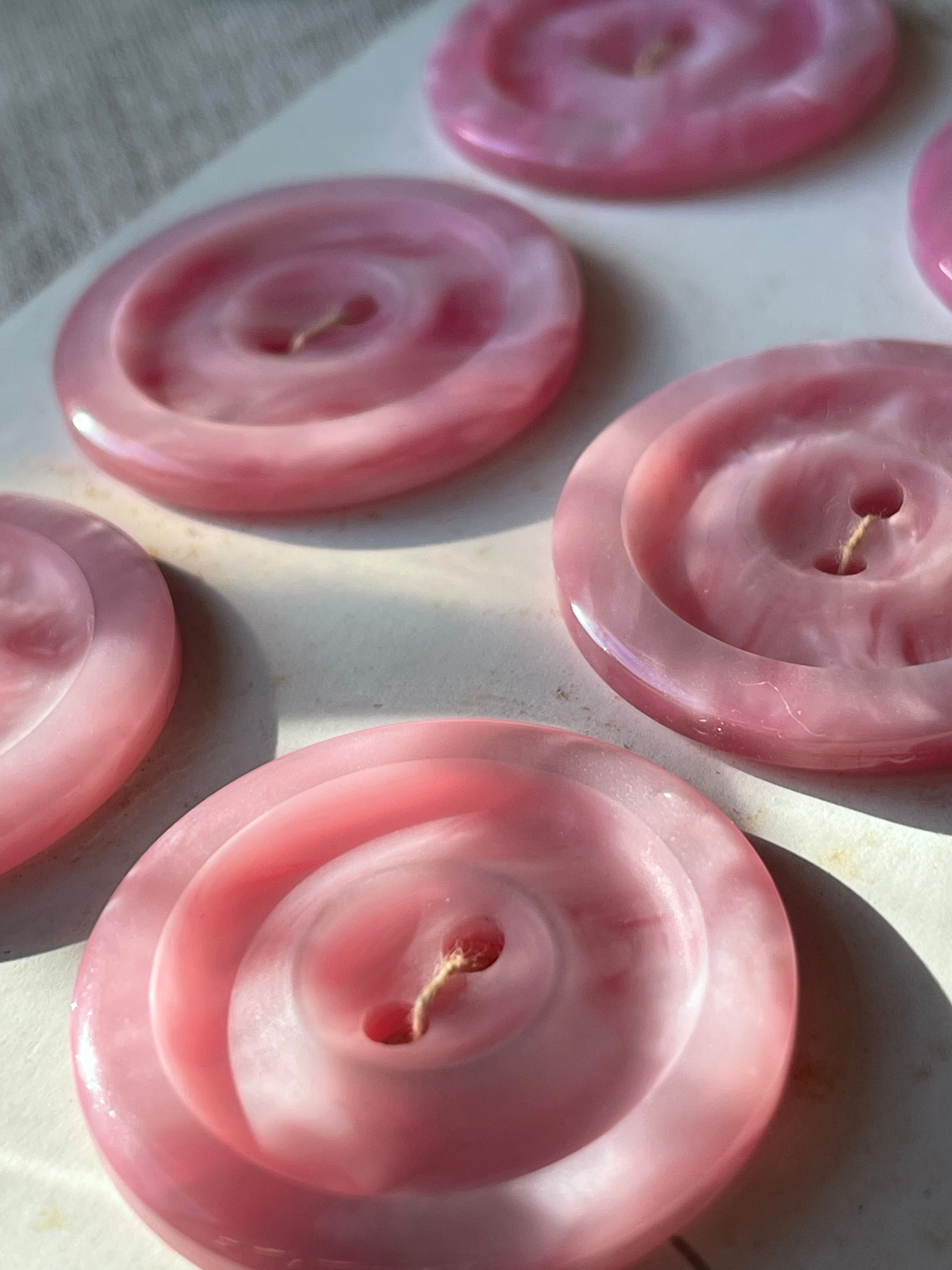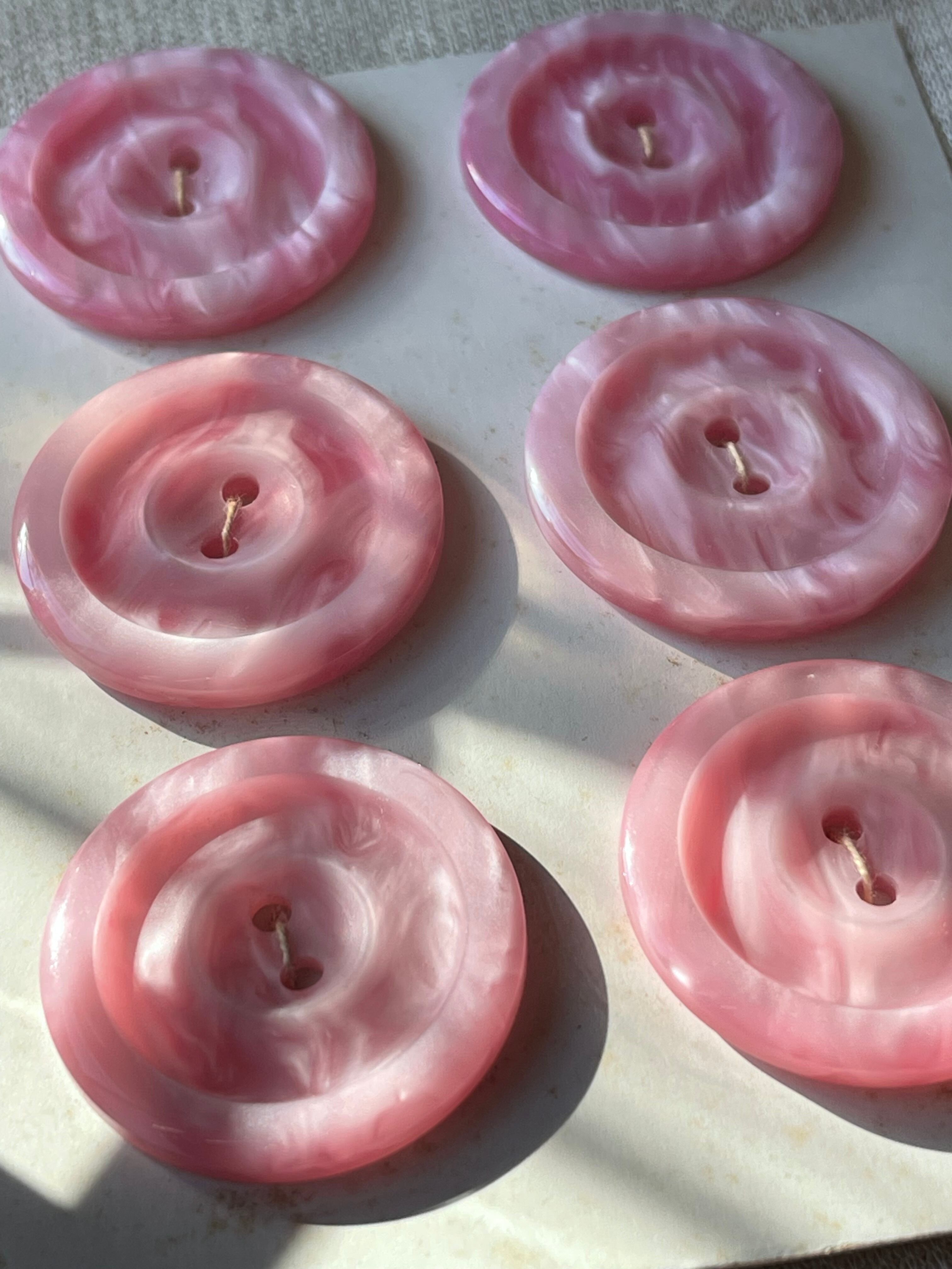【台紙付】ボタン 6個 特大 ピンク レトロ 【3-92】
