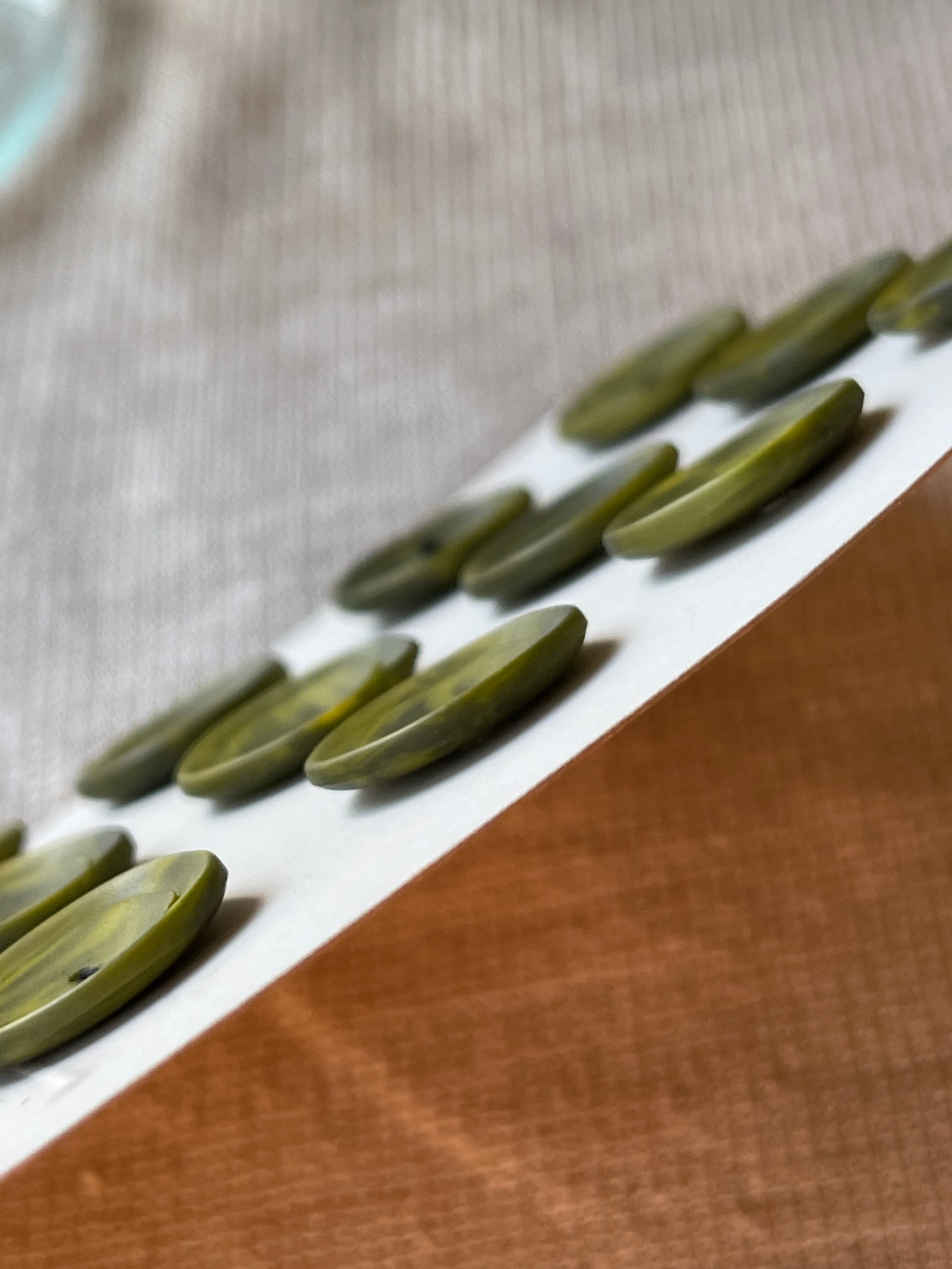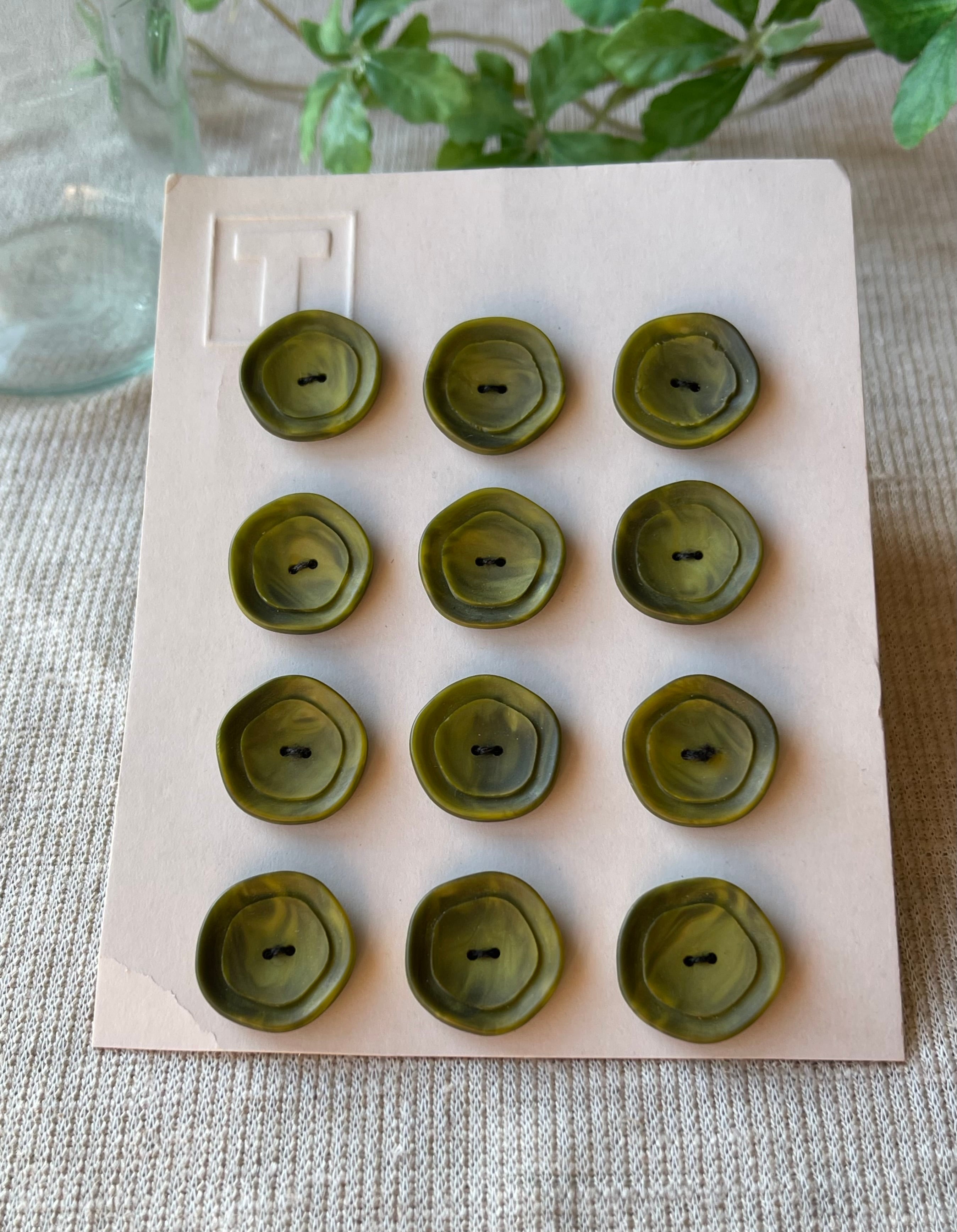 【台紙付】ボタン 12個 中 緑系 カーキ グリーン レトロ 【4-95】